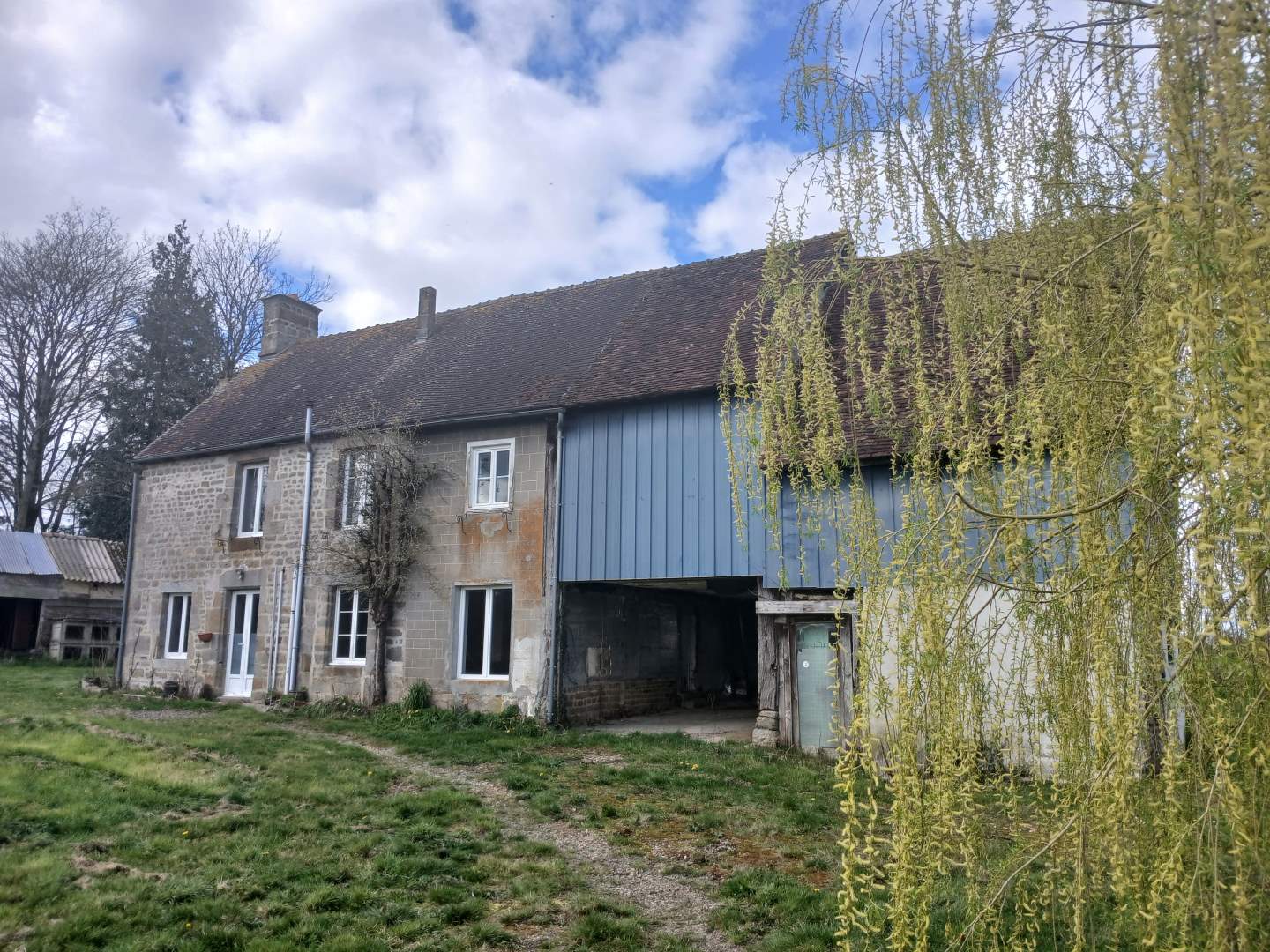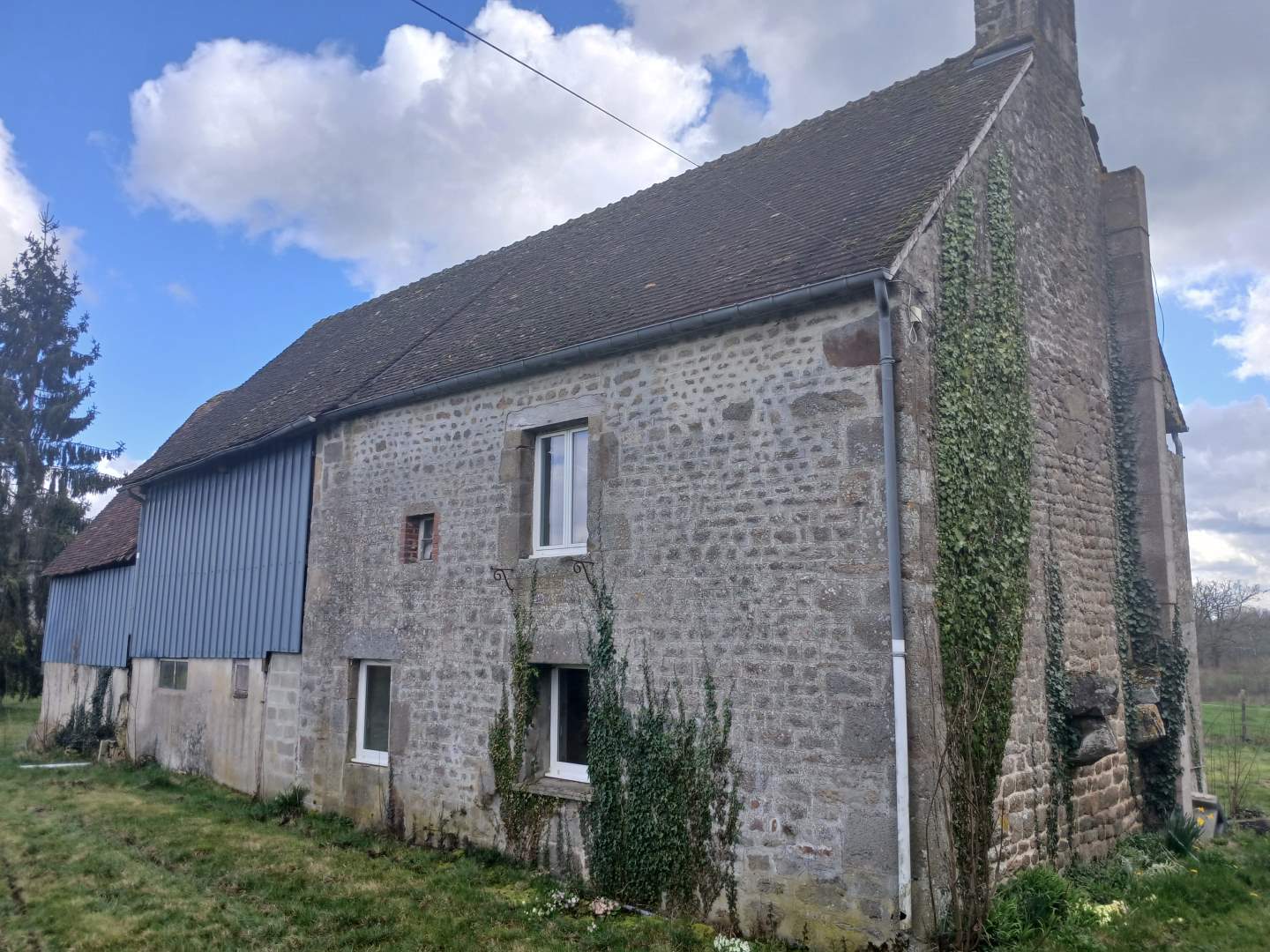 Maison d’habitation comprenant : Cuisine ouverte sur salle à manger/salon avec cheminée et insert. A l’étage : trois chambres, salle d’eau avec wc. Cave, abri de jardin, dépendance. Terrain