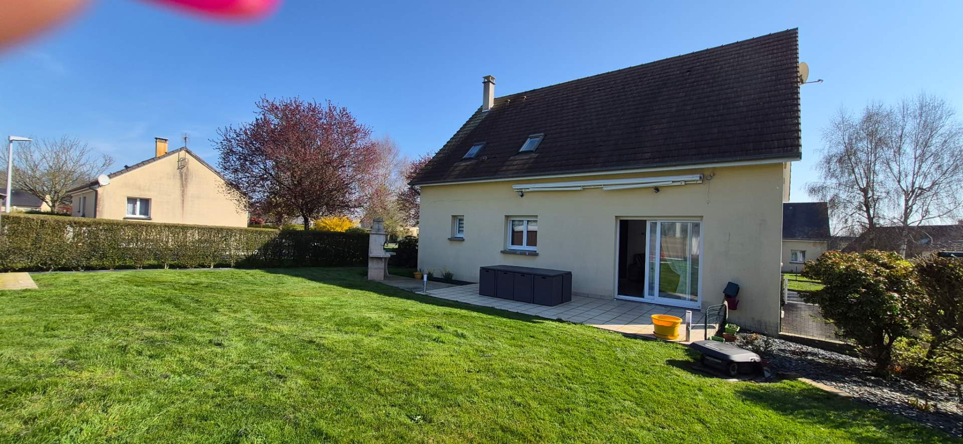 Jardin aménagé autour. Abri de jardin.