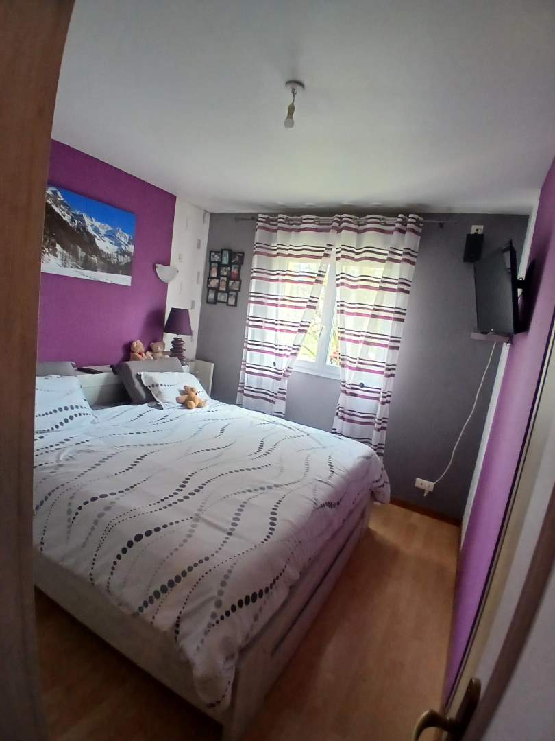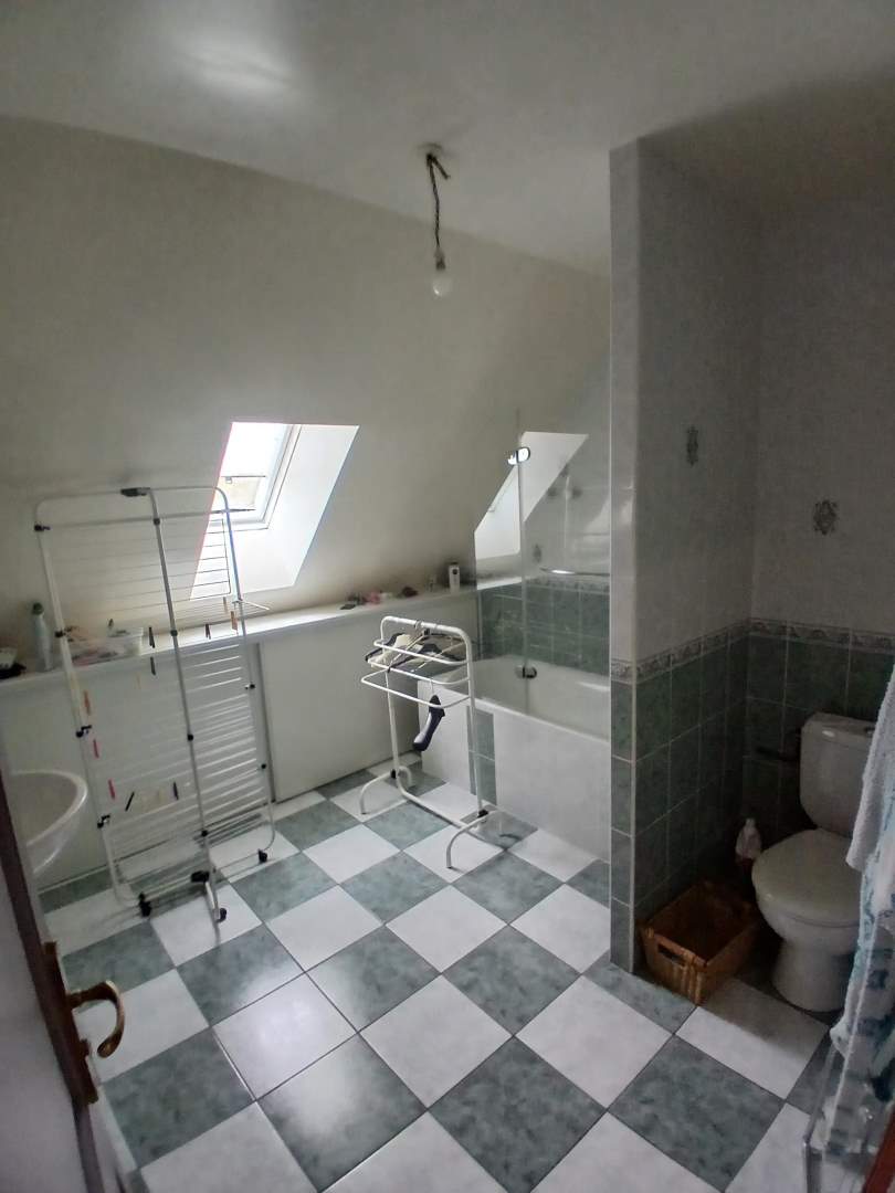 A l’étage : couloir desservant trois chambres, salle de bains avec wc, bureau.