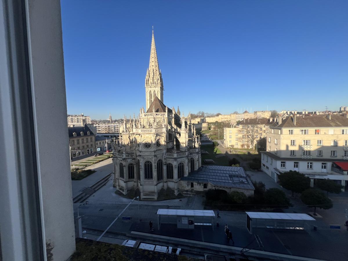 CAEN CENTRE - VUE EXCEPTIONNELLE sur église Saint Pierre - Lumineux 4 pièces de 96 m2 sis au 4ème étage sans ascenseur comprenant entrée avec placards, séjour salon de 27 m2, cuisine aménagée de 15 m2, 2 chambres de 16.50 m2 et 14.50 m2, salle d'eau, wc. Cave.