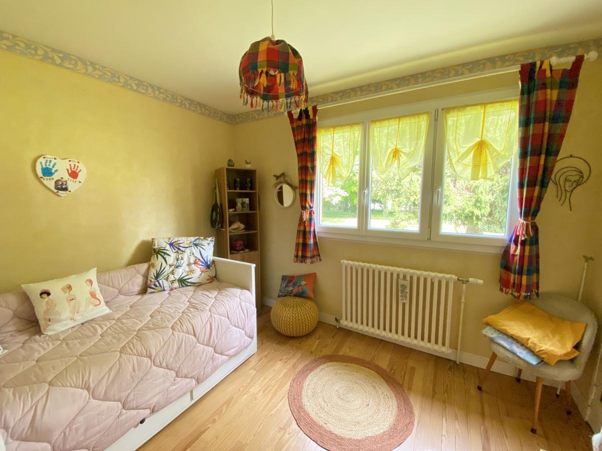 A l'étage : palier, deux chambres spacieuses également, un grenier, salle d'eau et WC. Sous-sol complet - Chauffage gaz - Fenêtres PVC - Abri de jardin.