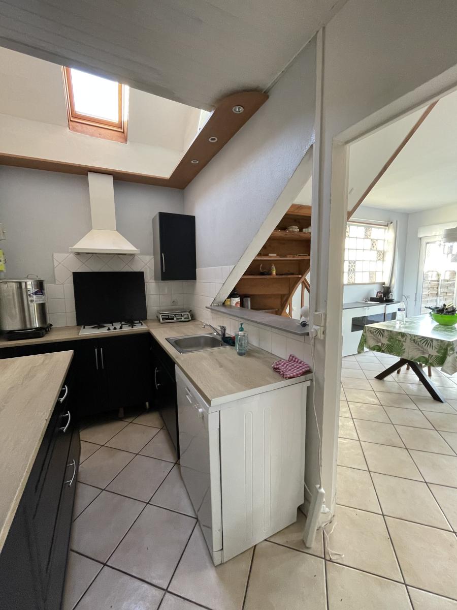 - au RDC : pièce de vie avec cheminée, cuisine A/E récente, salle d'eau à l'italienne récente, wc, buanderie,