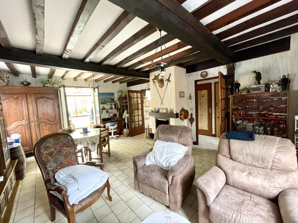- un vaste salon/séjour avec cheminée ouvrant sur une véranda lumineuse,