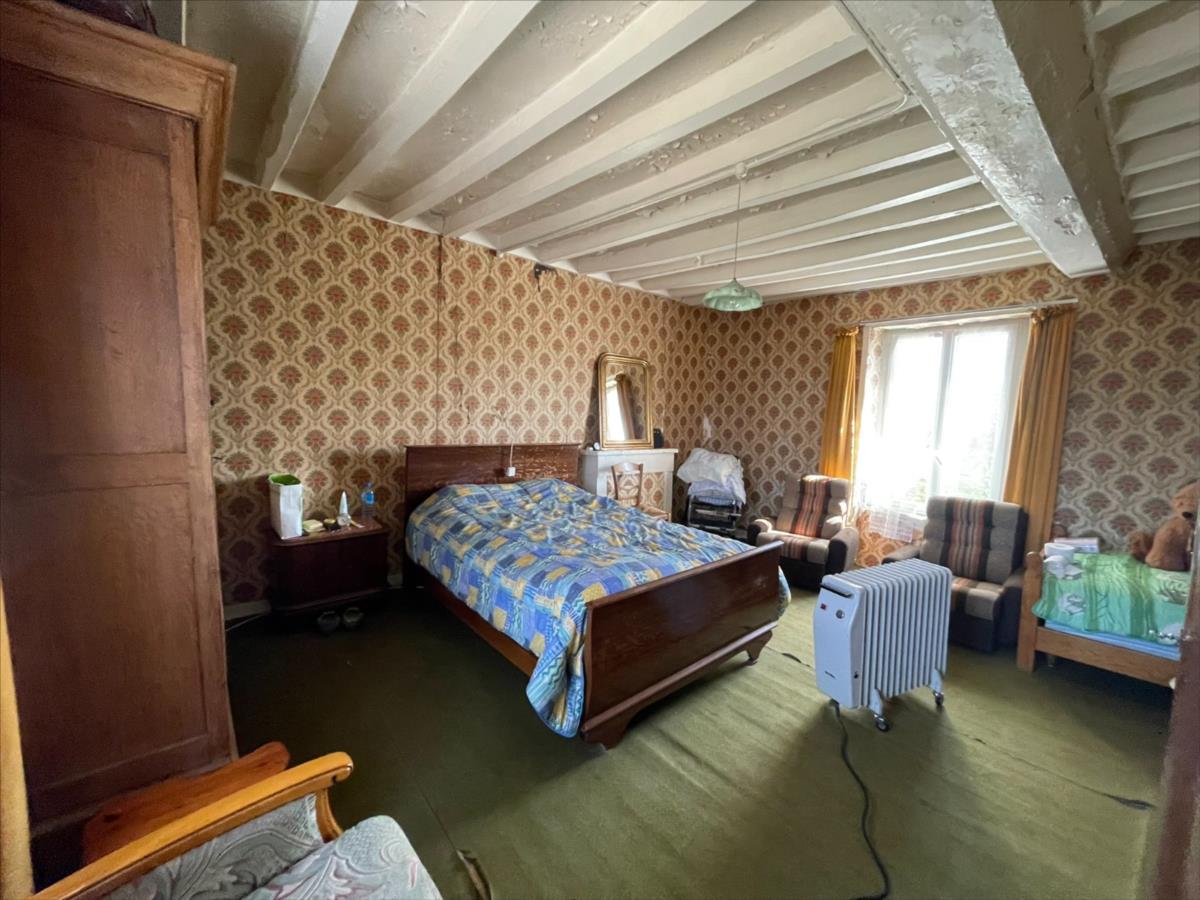 Composée au rez-de-chaussée : entrée desservant : cuisine, salle d'eau et wc, un salon.A l'étage : une grande chambre, deux chambres en enfilades.Caves en contigües. Dépendances (remises/hangar / appentis / chenil). Terrain 1 ha 30 a 04ca