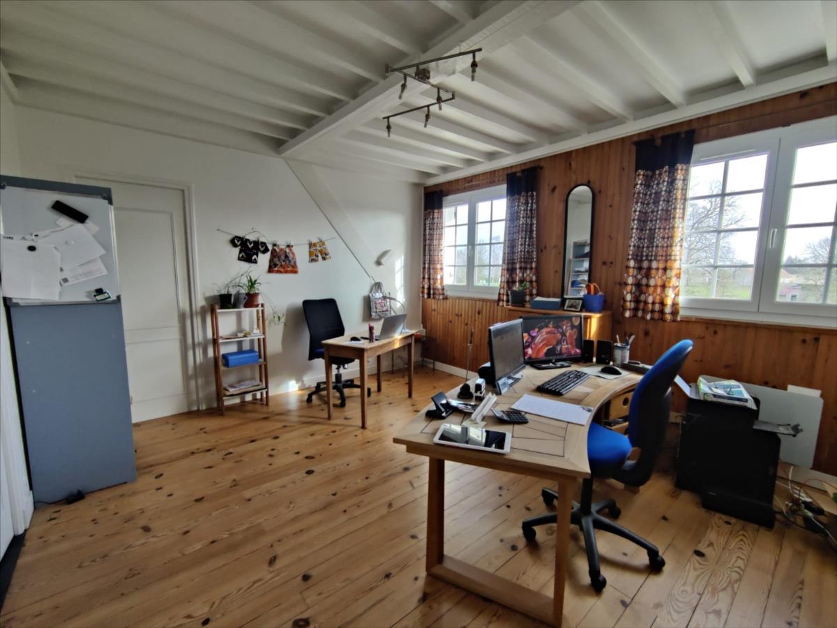 NOUVEAU 'Chez des Notaires à Mes Côtés' AUX PORTES DE FALAISE.Au calme et environnement  verdoyant.Une maison individuelle  d'une surface d'environ 127m².composée d'une pèce de vie ouverte  sur une cuisine aménagée (env 48m²), deux chambres, salle d'eau et wc.A l 'étage : pièce palière /bureau, une grande  chambre avec coin dressing ( env 19m²).Grenier aménageable : possible  4ème  chambre (env 19m²).Sous-sol complet. Jardin arboré 4 414 m².Bâtiment  annexe  (env 38m²).  Logement à consommation énergétique excessive Les informations sur les risques auxquels ce bien est exposé sont disponibles sur le site Géorisques : www. georisques. gouv. fr Consultez nos tarifs : https://desnotairesamescotes.notaires.fr/tarifs/?sfw=pass1692689660