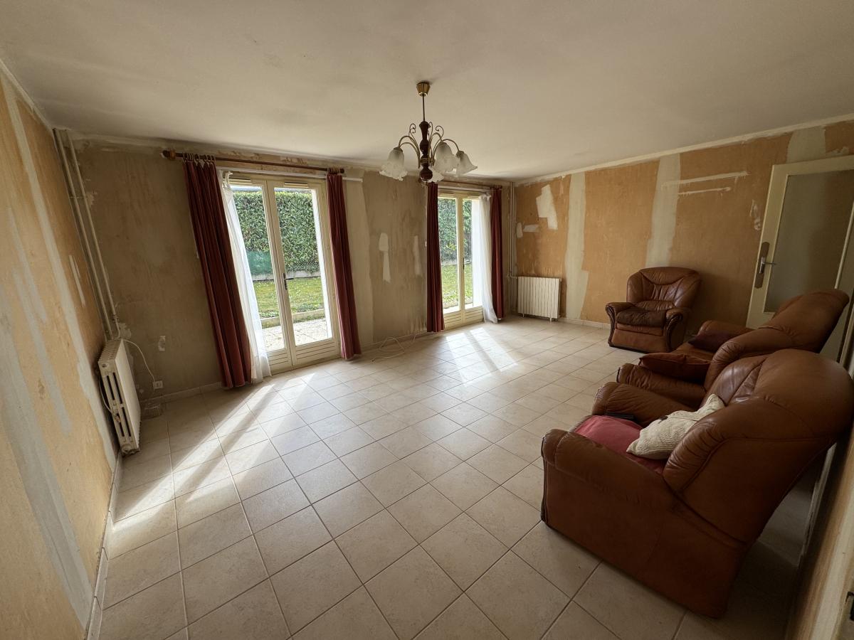 DEAUVILLE A proximité du golf Maison mitoyenne et de plain-pied comprenant: Entrée, séjour-salon, cuisine, 2 chambres, salle de bains, wc et garage. Terrain de 400m²