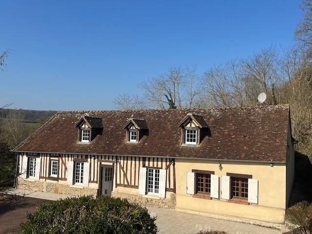 Orbec proche centre ville à pied, vue sur la vallée, une maison à usage d’habitation construite en colombages et couverte en petites tuiles comprenant :