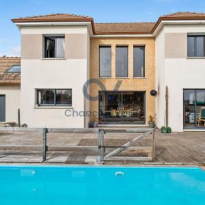 À l’extérieur, le jardin sans vis à vis accueille une agréable terrasse et une piscine, permettant de profiter pleinement des beaux jours dans un environnement calme. Des garages extérieurs complètent l’ensemble, offrant des solutions pratiques de stationnement et de rangement.
