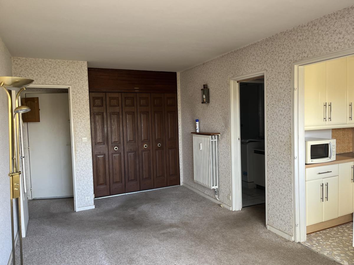 400 mètres Mer, Au 2ème étage sans ascenseur, appartement de type F2 avec balcon-loggia d'environ 7,9m² orienté Est, comprenant entrée, séjour avec placards, kitchenette, une chambre, salle d 'eau avec wc. Box en sous-sol. Rénovation à prévoir