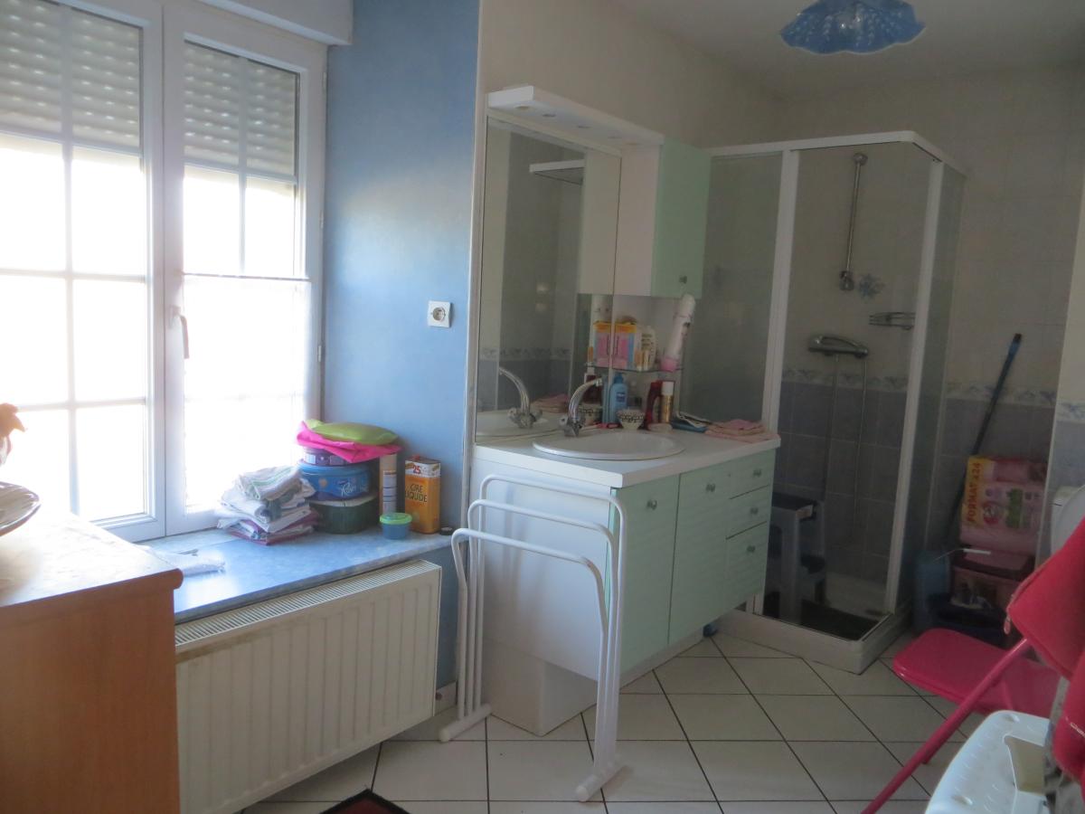 - au premier étage : un palier desservant 2 chambres, une grande chambre à finir d'aménager, une salle de bains et WC, et un grenier sur l'ensemble.