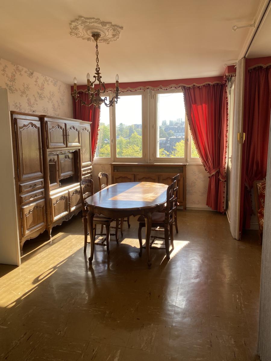 Situé en centre-ville, dans une co-propriété avec syndic, UN APPARTEMENT (S.H. 79.05 m²) situé au 4ème étage AVEC VUE, entièrement à rénover, comprenant : - une entrée, une cuisine, un séjour-salon avec loggia, un dégagement, deux chambres dont une avec placard, une salle de bains, un bureau avec placard, Un GRENIER à usage de stockage et pièce aménagée. DEUX CAVES et UN GRAND GARAGE. Les informations sur les risques auxquels ce bien est exposé sont disponibles sur le site Géorisque : www.georisques.gouv.fr