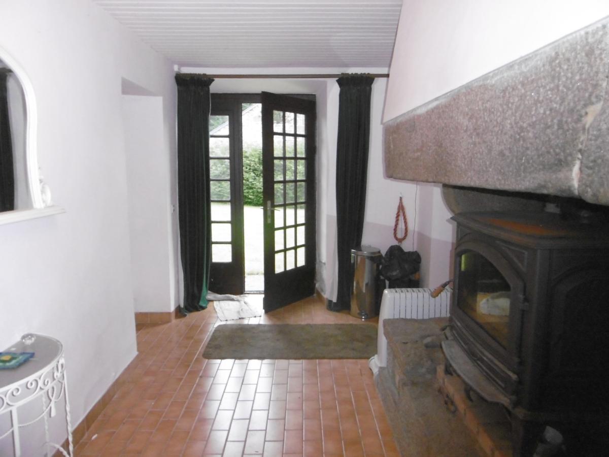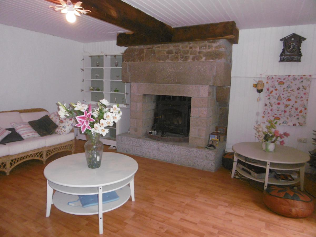 - Rez-de-chaussée : hall d'entrée avec cheminée et insert, séjour avec cheminée et insert, cuisine avec coin repas et cuisinière à bois.