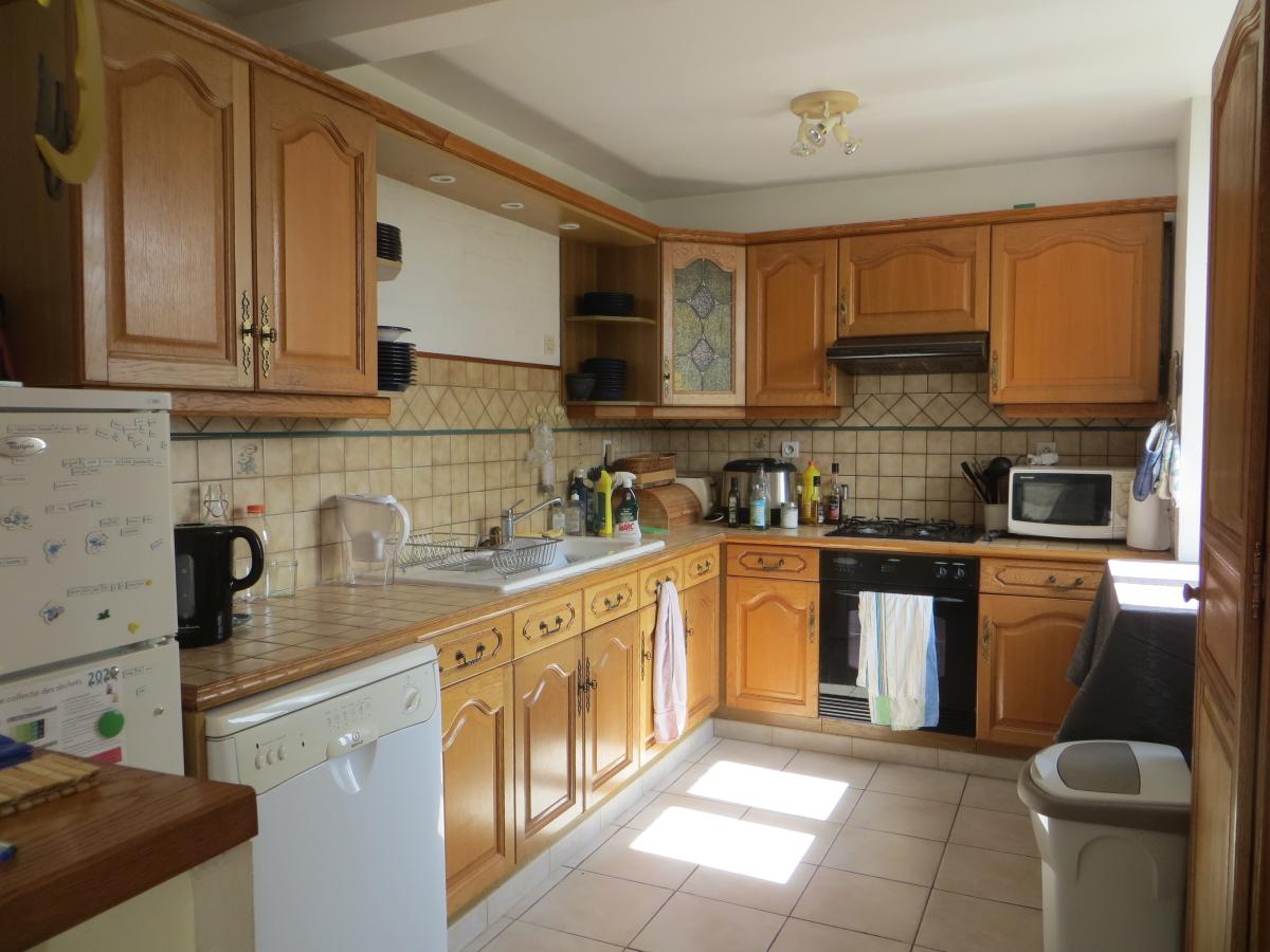 - au rez-de-chaussée : une salle à manger - séjour avec cheminée insert, une cuisine aménagée, une véranda - salon, une salle d'eau avec WC,