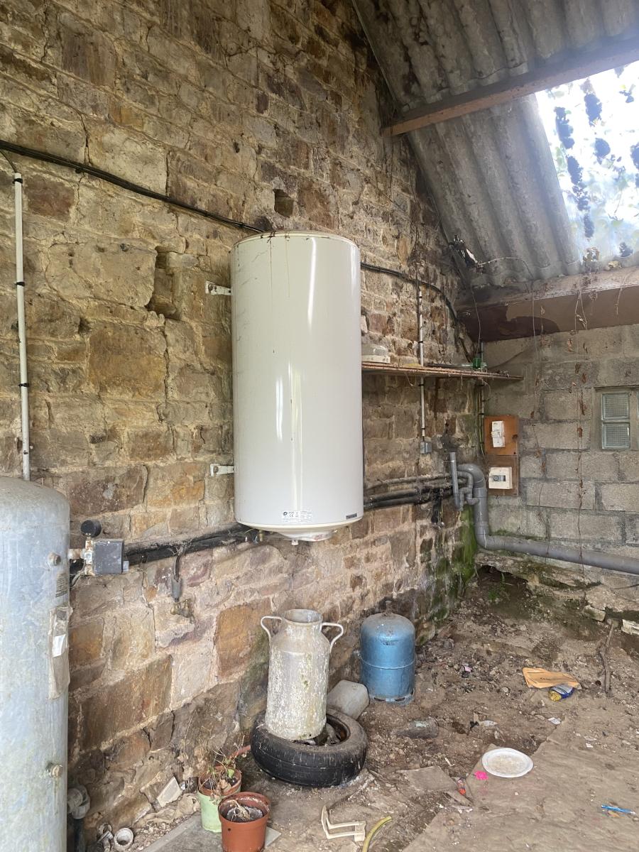 - au rez-de-chaussée : une pièce avec coin-cuisine, une chambre, une salle d'eau avec W.C., grenier sur le dessus (accès extérieur)