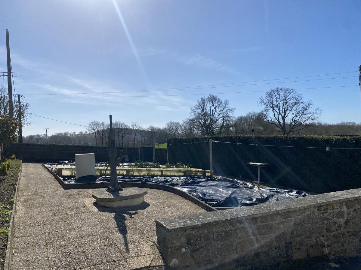A 6 km du centre-ville, située dans un environnement champêtre et isolé, UNE MAISON exposée au Sud, à réhabiliter (SH 120 m²) comprenant :