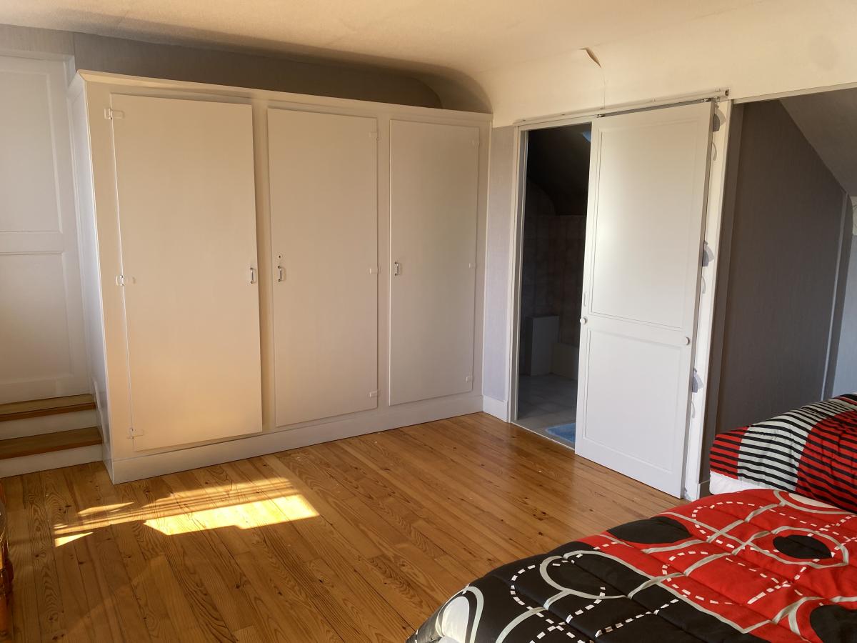 - au premier étage : un palier desservant une chambre et salle d'eau, WC avec lavabo, une grande chambre avec placard et lavabo, et en enfilade une chambre avec placard et cabinet de toilette,