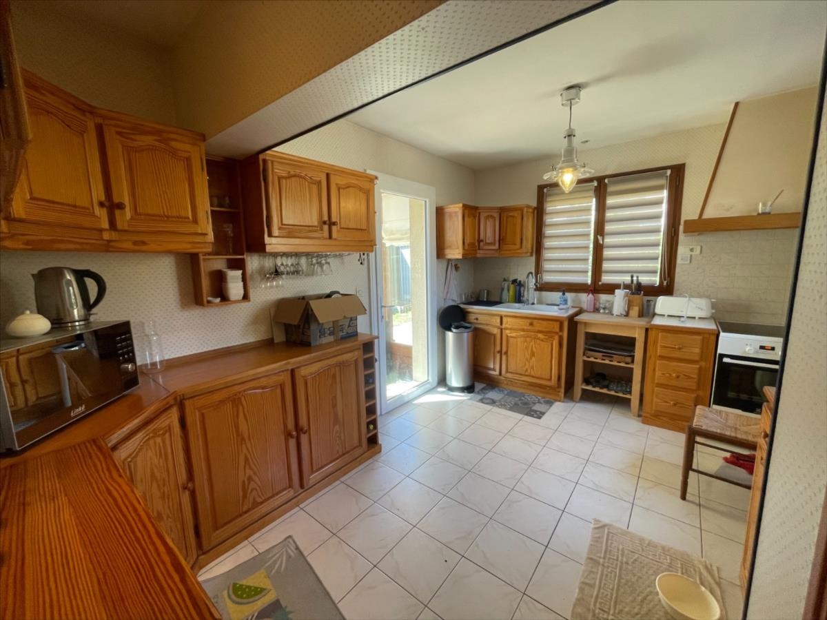 salon, cuisine aménagée, terrasse dallée. Au 1er palier, chambre 3 mansardée.