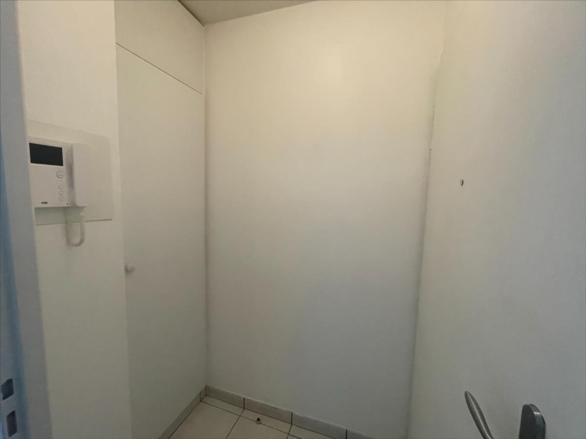 étage avec ascenseur, entrée placard, séjour avec kitchenette, salle d'eau avec