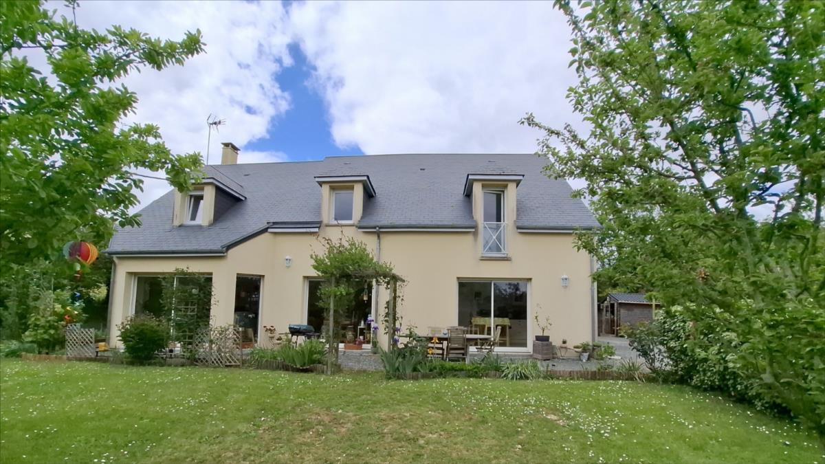 Dans un lotissement, pavillon construit en 2007, couvert en ardoise, comprenant :. Au rez-de-chaussée : hall d'entrée, salle - salon (42m² env.), cuisine aménagée et équipée, dégagement desservant : WC, une salle d'eau, une chambre.. A l'étage : mezzanine, lingerie, trois chambres, salle de bains.Garage attenant : 26m² en. avec partie cave.Jardin planté autour.Le tout pour une surface cadastrale de 890m².