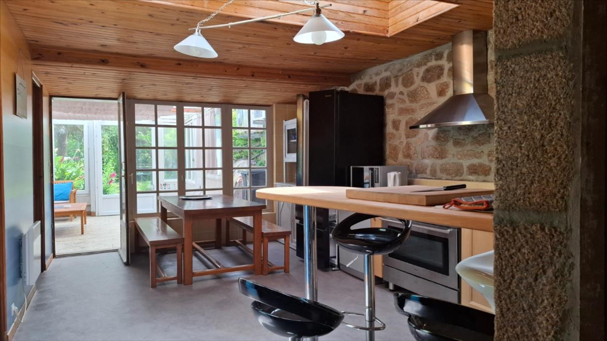 Une maison d'habitation construite en pierre et couverte en ardoise et en pierre; comprenant :- au rez-de-chaussée : séjour - salon, cuisine, salle d'eau, WC buanderie. Véranda de construction légère à la suite.
