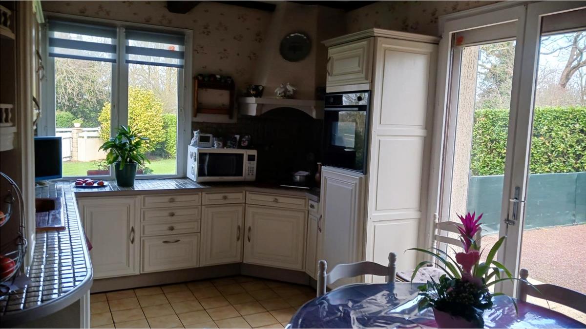 Un pavillon construit en 1981 sur beau terrain clôturé, offrant une autonomie de plain-pied.Il est composé de :- rez-de-chaussée : entrée, salon-séjour avec cheminée (environ 30 m²), cuisine aménagée, couloir desservant : salle de bains, WC, deux chambres.