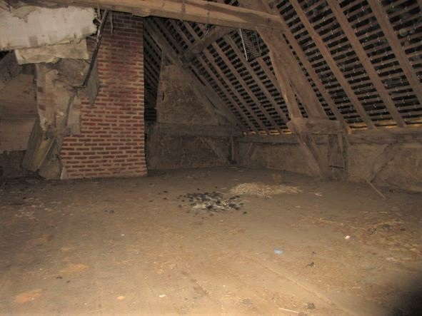 En pleine campagne maison en pierres, couverte en ardoises, comprenant : au rez-de-chaussée : grande pièce avec cheminée, cave. Au dessus deux greniers aménageables. Garage attenant. Boite électrique récemment installée en bordure de route. Branchement eau à faire.