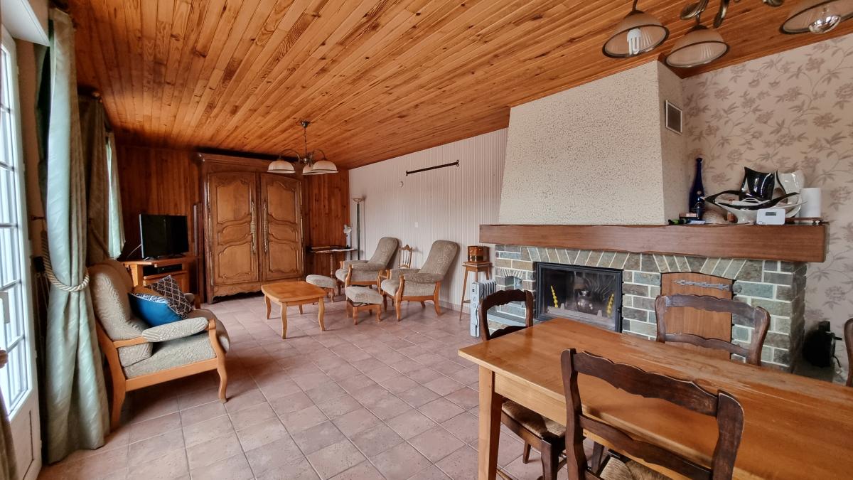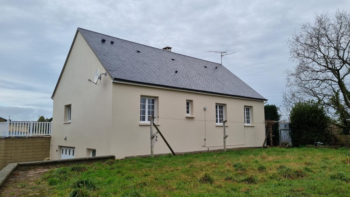 Dans le bourg de Saint-Jean-Des-Champs, un pavillon de plain-pied sur sous-sol. Sur le terrain un grand hangar de stockage d'environ 100 m². Entrée avec placards, une cuisine aménagée et équipée, salle à manger avec cheminée, trois chambres, une salle d'eau avec wc, un wc séparé. Sous-sol complet avec garage, trois pièces. Terrain : 4421 m²