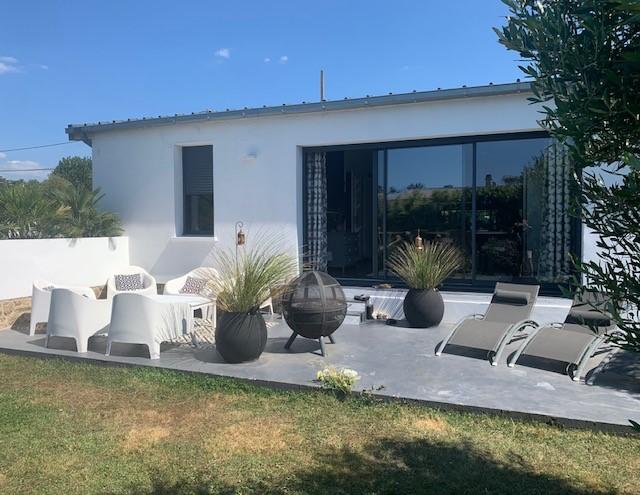 RARE A LA VENTE : Située à 300 m de la plage, charmante villa de plain-pied entièrement restaurée. Elle comprend : une entrée, une cuisine aménagée-équipée ouverte sur la salle à manger, un salon possédant une cloison japonaise, et pouvant donc aisément se transformer en chambre, 2 chambres, une salle d'eau avec wc, ainsi qu'un espace buanderie aménagé. Des combles aménagés pour un rangement optimal, ainsi qu'un appentis complètent ce bien. Une terrasse exposée ouest vous permettra de profiter pleinement des couchers de soleil, le tout sur un terrain de 463 m², entièrement clos et arboré. Honoraires de négociation à charge vendeur.
