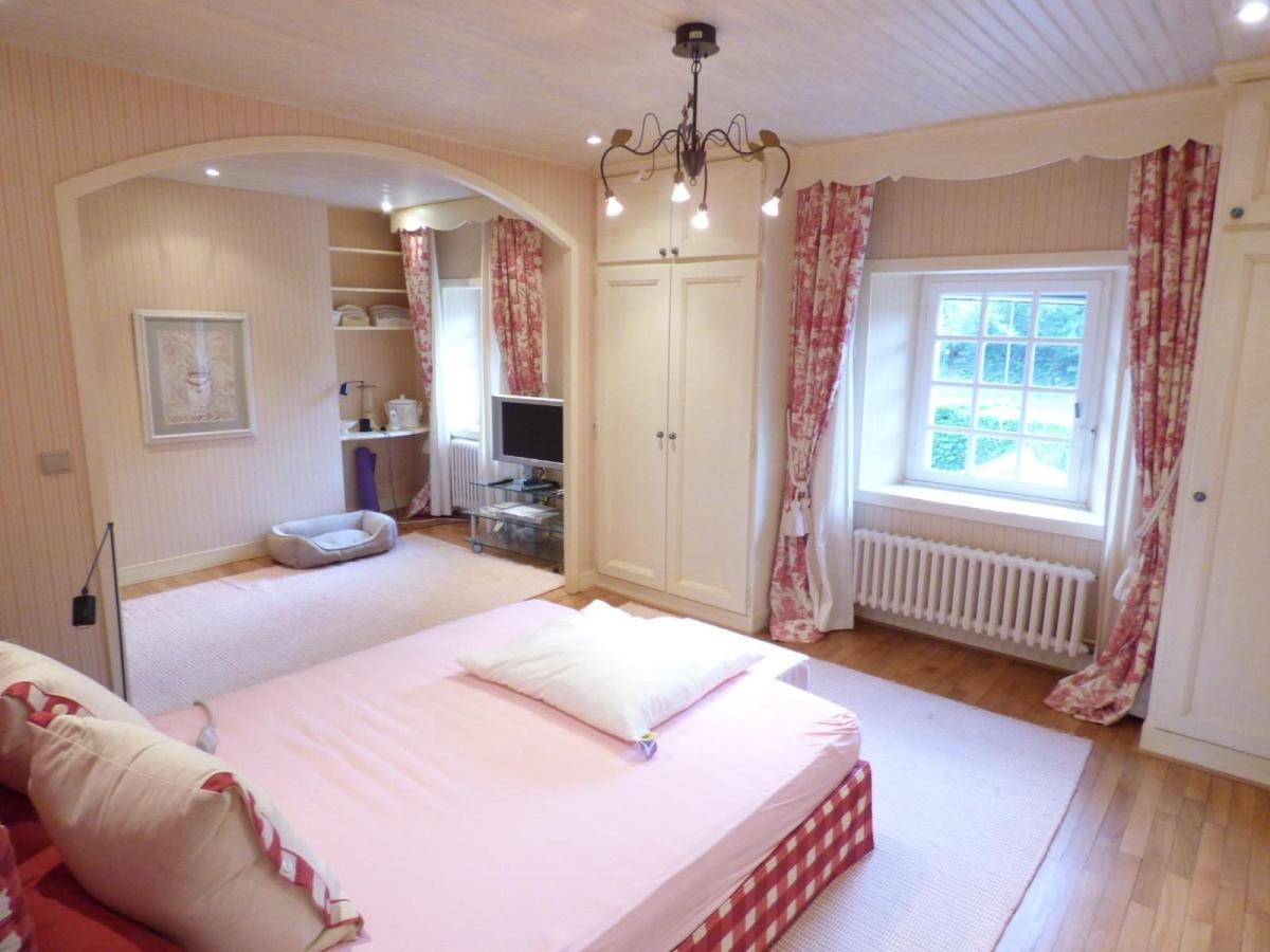- Au rez de chaussée: entrée, salle à manger en rotonde, séjour avec cheminée, cuisine équipée, dégagement, débarras, WC avec lavabo, buanderie, une petite chambre, garage.