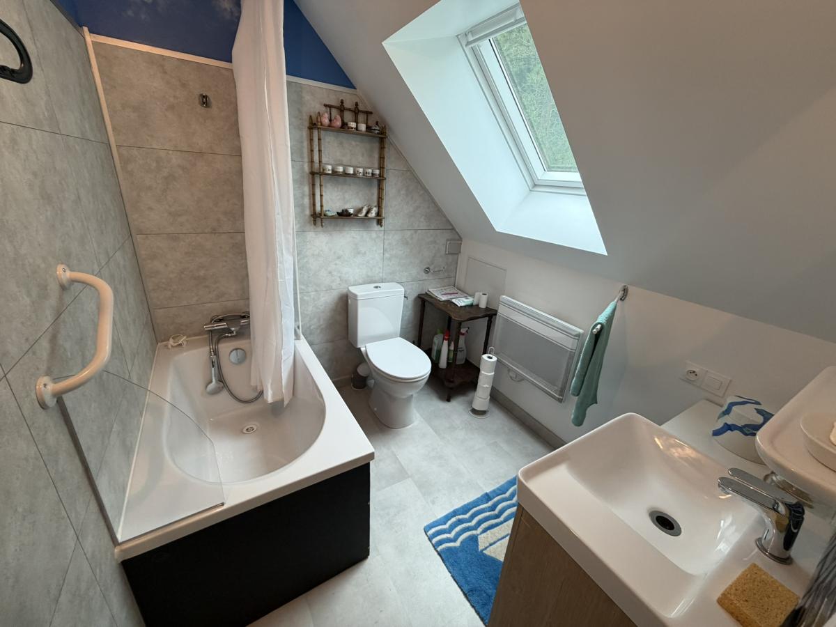 - A l'étage: palier, salle de bains avec WC, deux chambres.