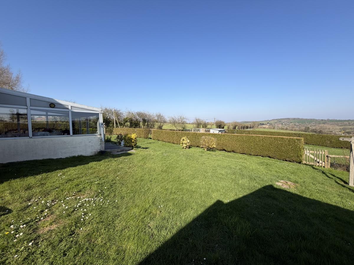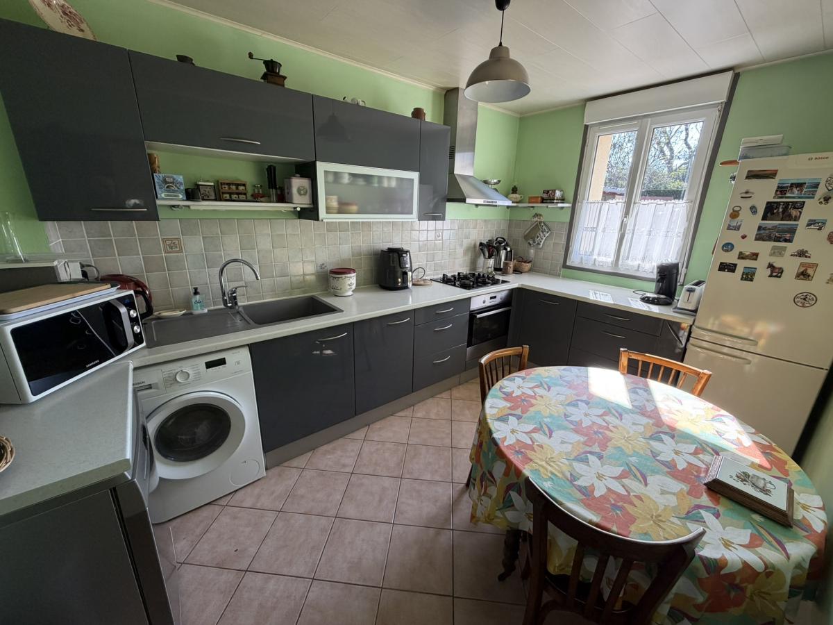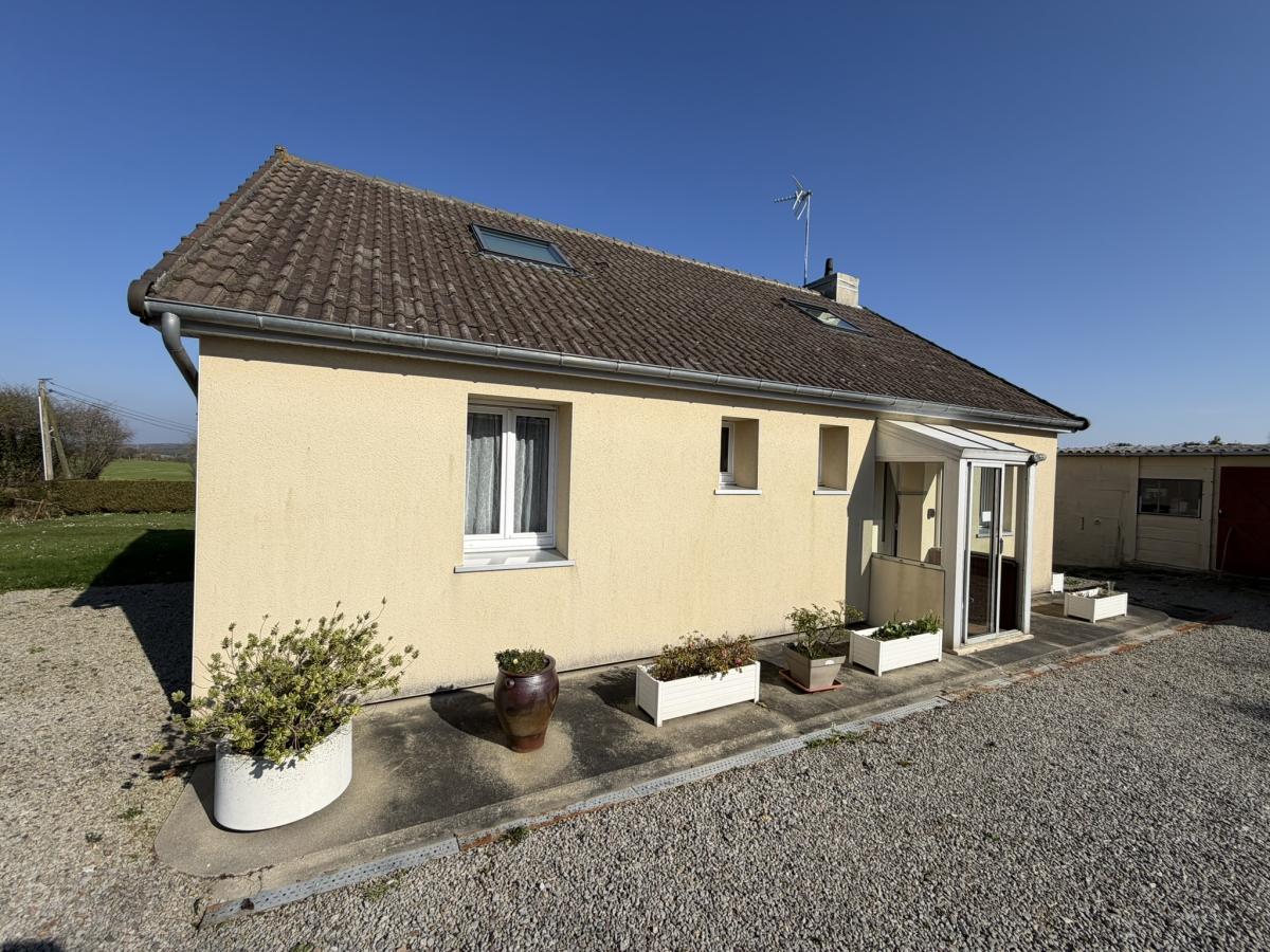 - Au rez de chaussée: petit sas, entrée, séjour avec poêle à bois, cuisine équipée, véranda, deux chambres, salle d'eau, WC.