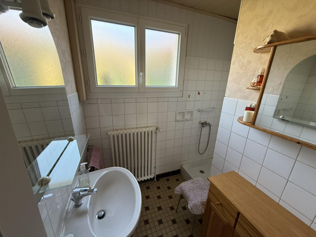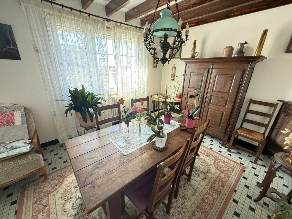 - A l'étage: palier, trois chambres dont une avec placards, cabinet de toilette, WC, deux petits greniers.