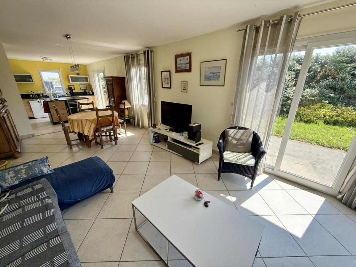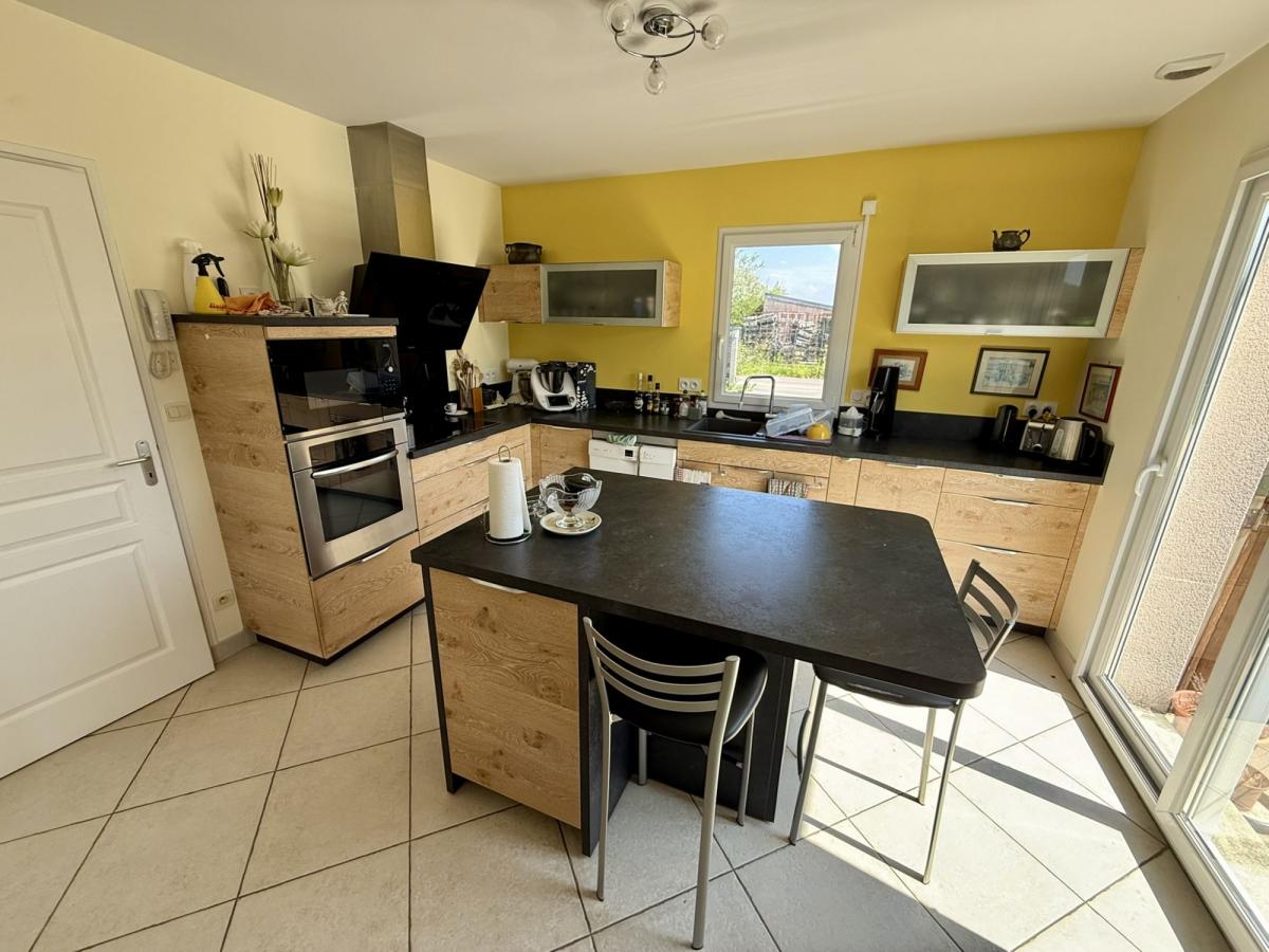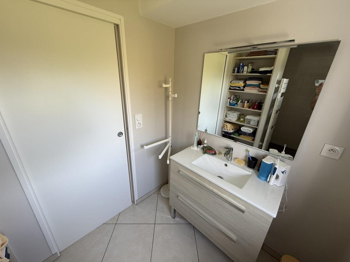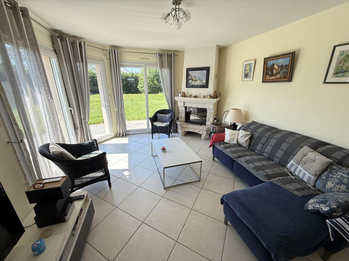 - Au rez de chaussée: entrée avec placard, grand séjour avec cheminée-insert et cuisine ouverte équipée avec ilot, une chambre avec placards, salle d'eau avec douche à l'italienne, WC avec lave-mains, grande arrière-cuisine/buanderie.