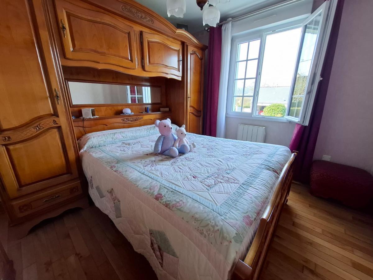 RDC : entrée, séjour salon avec poêle à bois, cuisine aménagée et équipée, dégagement, salle d'eau, WC, 2 chambres (dont une aménagée en buanderie avec placards).