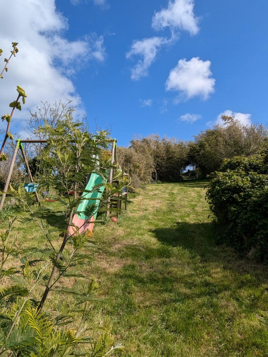 Terrain sur la façade arrière donnant un potentiel supplémentaire à cette maison : construction, stationnement, jardin...