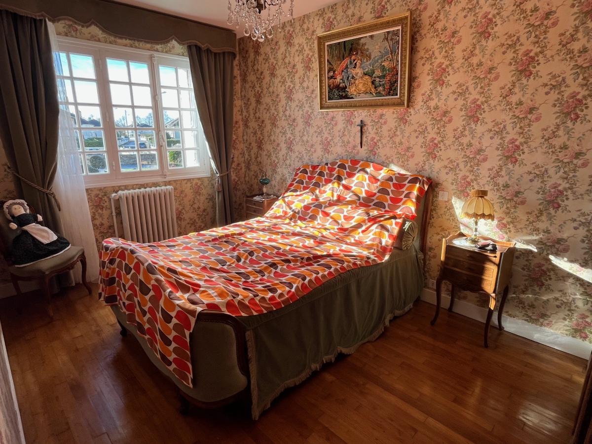 Rez de chaussée surélevé : entrée, séjour parquetée avec cheminée 27 m² donnant sur grande terrasse, cuisine aménagée 10 m², trois chambres parquetées 9 m², 10 m² et 11,5 m², salle de douches, wc,