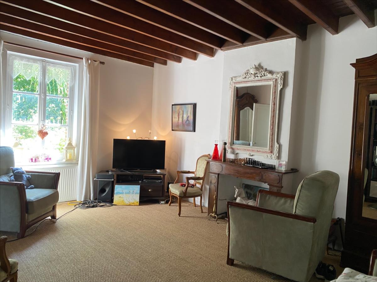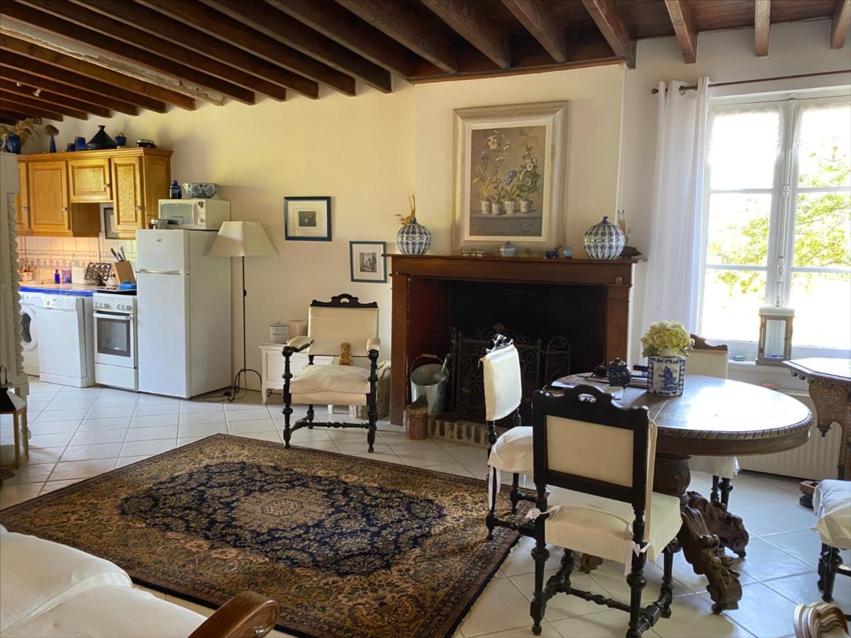 - au RDC: entrée, salon avec cheminée, séjour ouvert sur cuisine aménagée, chambre, salle de bain, wc.