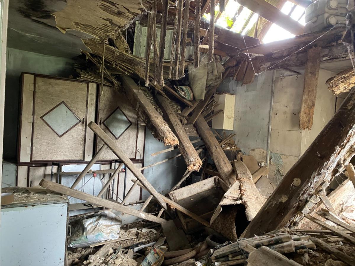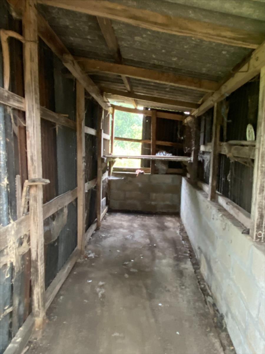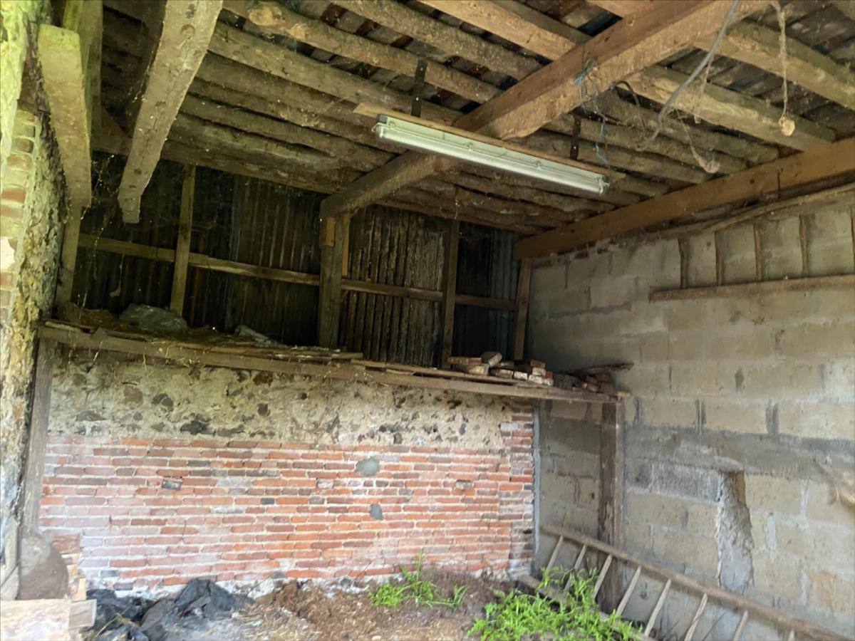 Dépendance en équerre avec une partie de la toiture en très mauvais état dont une partie est effondrée: garage, cave, cellier