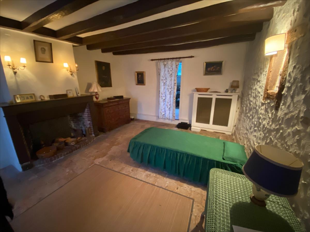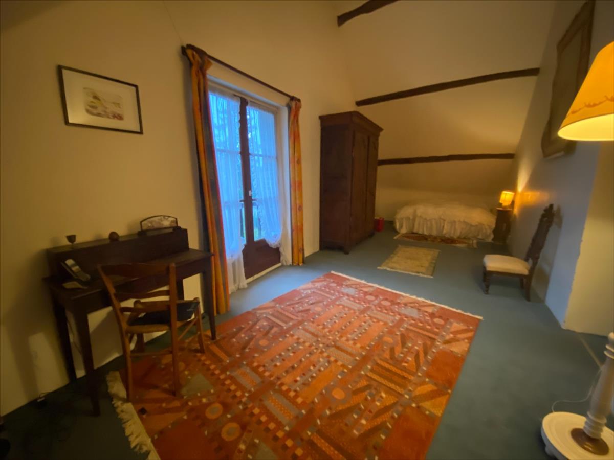 - Au rez-de-chaussée : une entrée, une salle d’eau avec WC, un bûcher, une pièce de stockage, une cuisine, un double séjour, quatre chambres, une salle de bains avec WC, un atelier et un cellier.