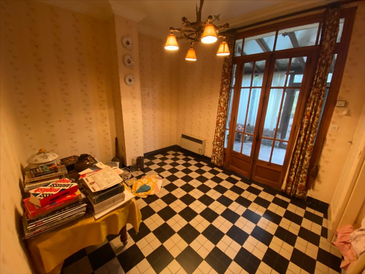 - au rez-de-chaussée : une cuisine, un séjour, un WC et une véranda. - à l'étage : une première chambre avec un point d'eau et un débarras, une deuxième chambre avec un débarras et une salle de bain. - un sous-sol intégral avec entrée garage.