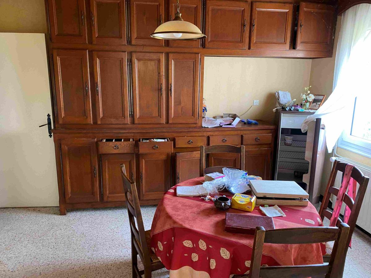 PONT D'OUILLY, 2 mns tous commerces: Maison d'habitation contemporaine sur 2 327 m² de terrain, comprenant au rez-de-chaussée, entrée, couloir, cuisine, chaufferie, salle à manger avec cheminée, deux chambres, salle de bains, wc, grenier sur l’ensemble, terrain en dépendant avec un garage préfabriqué, un bâtiment préfabriquée à usage d’atelier, bureau et wc, un bâtiment en bois à usage de stockage, double vitrage, chauffage fioul, prix 120 000€ honoraires de négociation à la charge de l'acquéreur 7 100€ ttc soit 127 100 €.