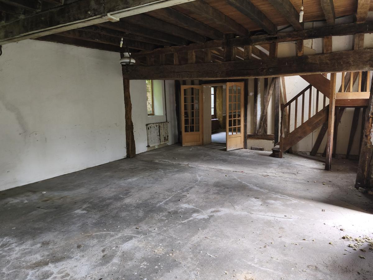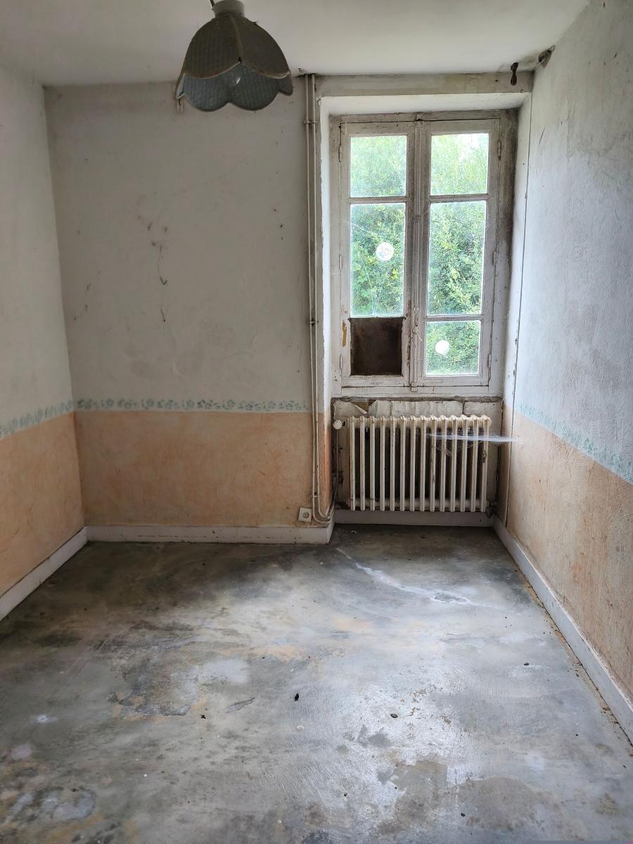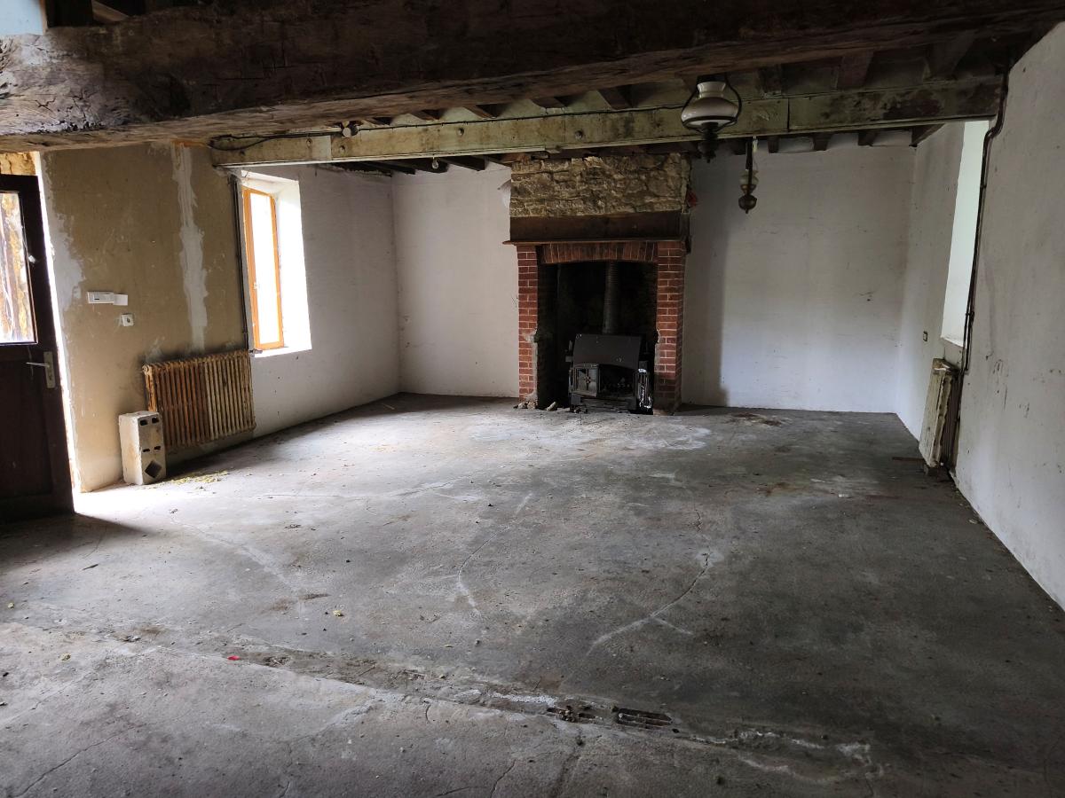 Dans hameau en campagne, maison à rénover entièrement de 6 pièces principales sur env. 1.300 m² de terrain. Le rez-de-chaussée est composé d'un séjour avec cheminée, 1 chambre, 2 pièces, cuisine, salle d'eau, wc, chaufferie, Au 1er étage : 3 chambres, 2 pièces, dégagement. En dépendance : garage ouvert. L'ensemble sur 1.300 m² de terrain. Ancien système de chauffage central, hors d'usage. DPE : F. Installation nouveau système d'assainissement à prévoir.