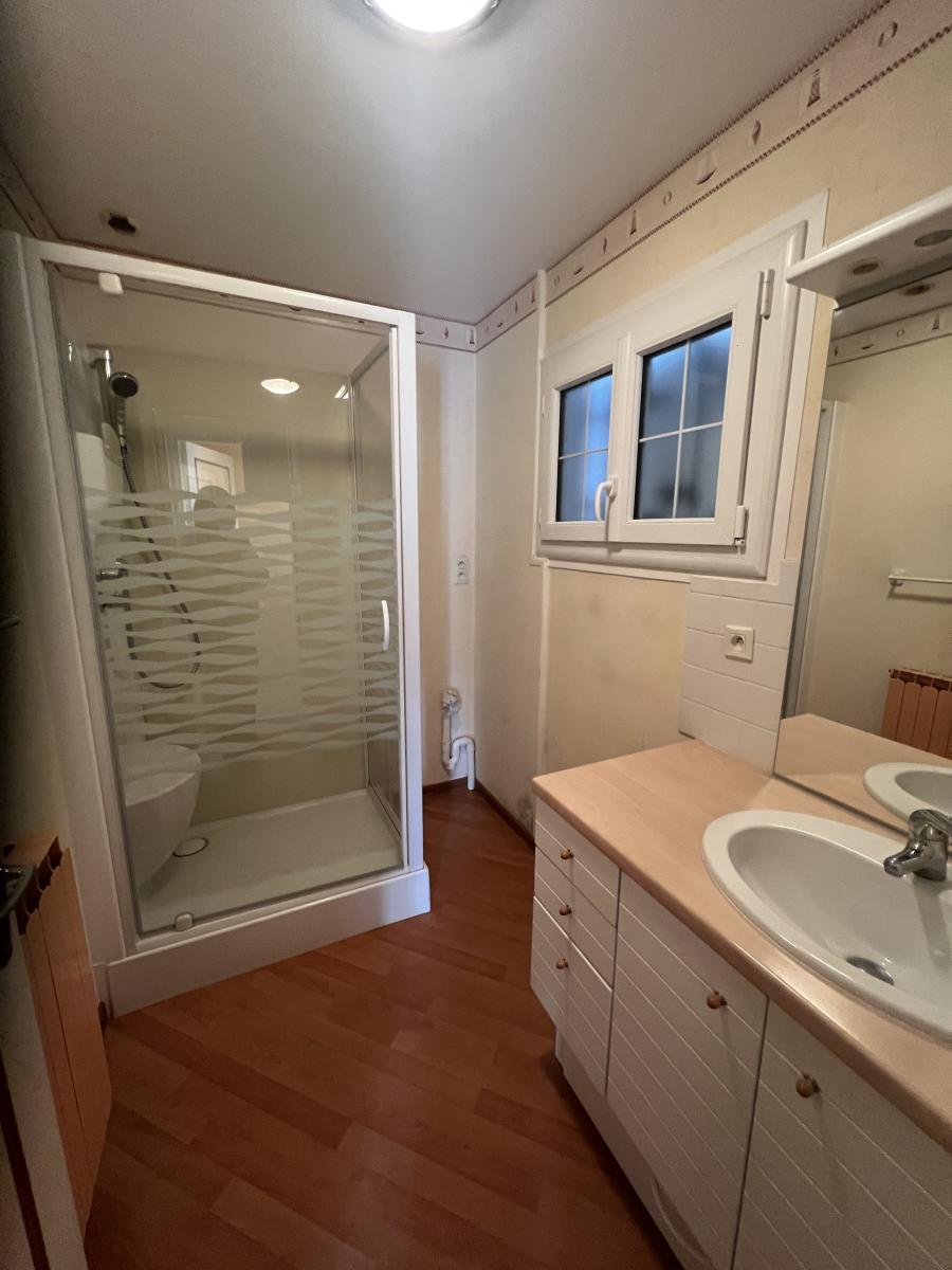 La maison de 48 m² comprend séjour, cuisine, chambre, salle d'eau, WC séparés.