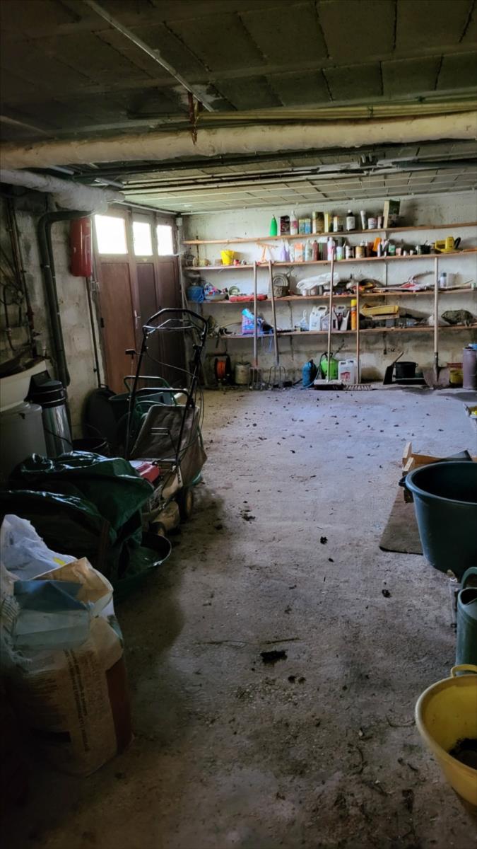 Pavillon de 130 m² sur 1041 m² : entrée et couloir desservant : cuisine, séjour, véranda, quatre chambres parquetées, salle de bains, wc, cabinet de toilettes; sous-sol total avec garage, atelier, ancienne chambre et salle de bains.