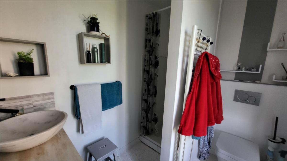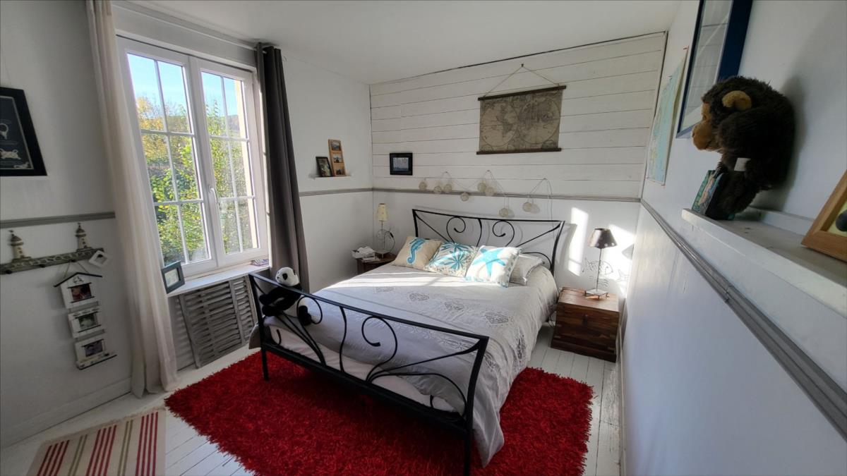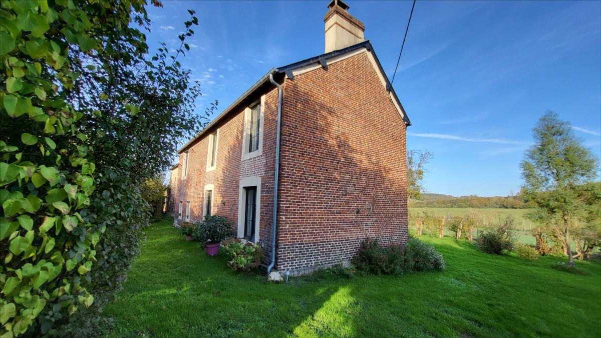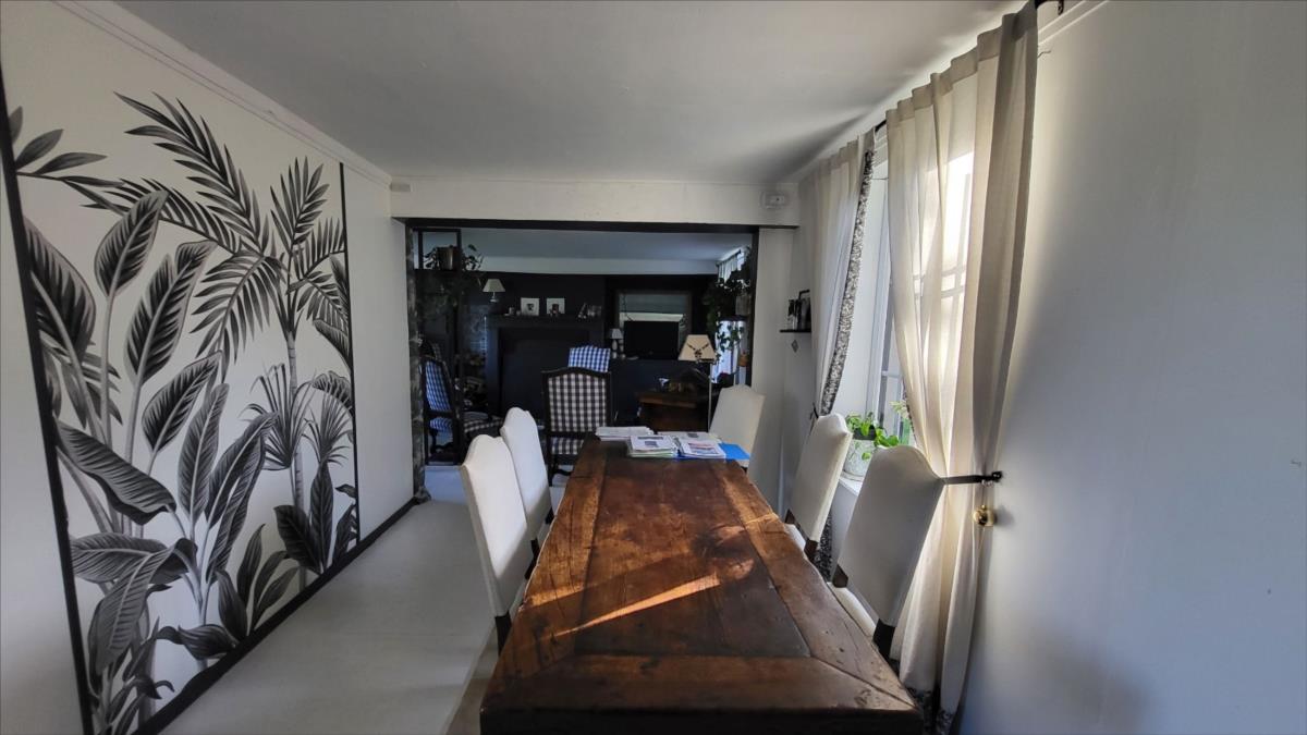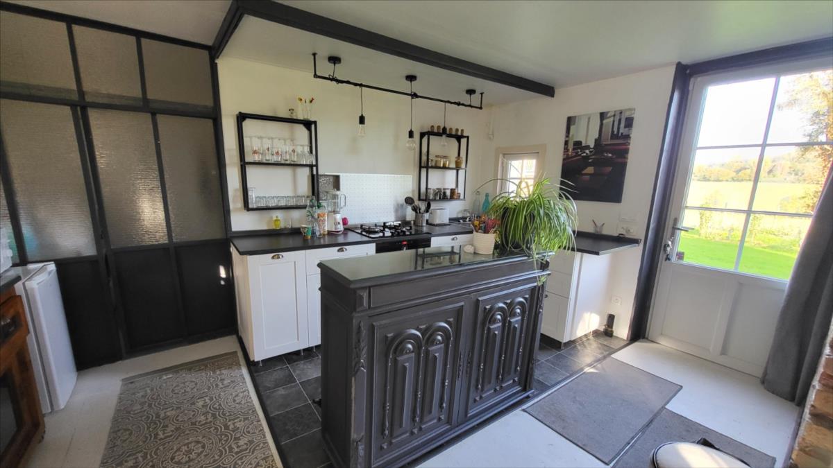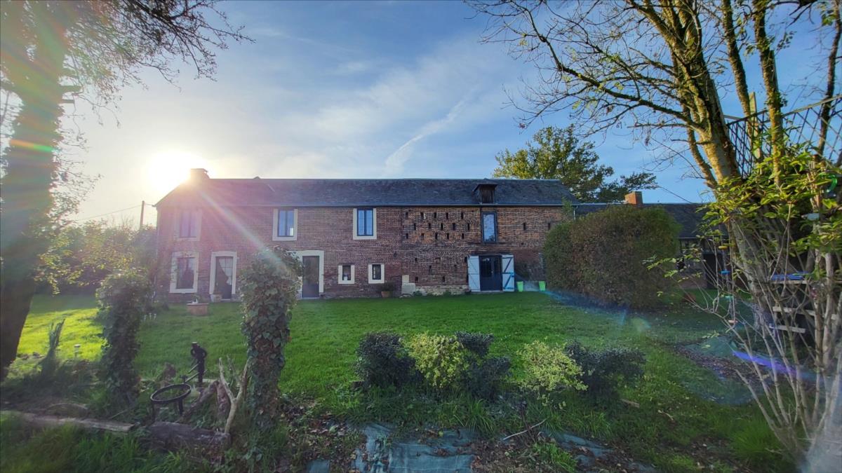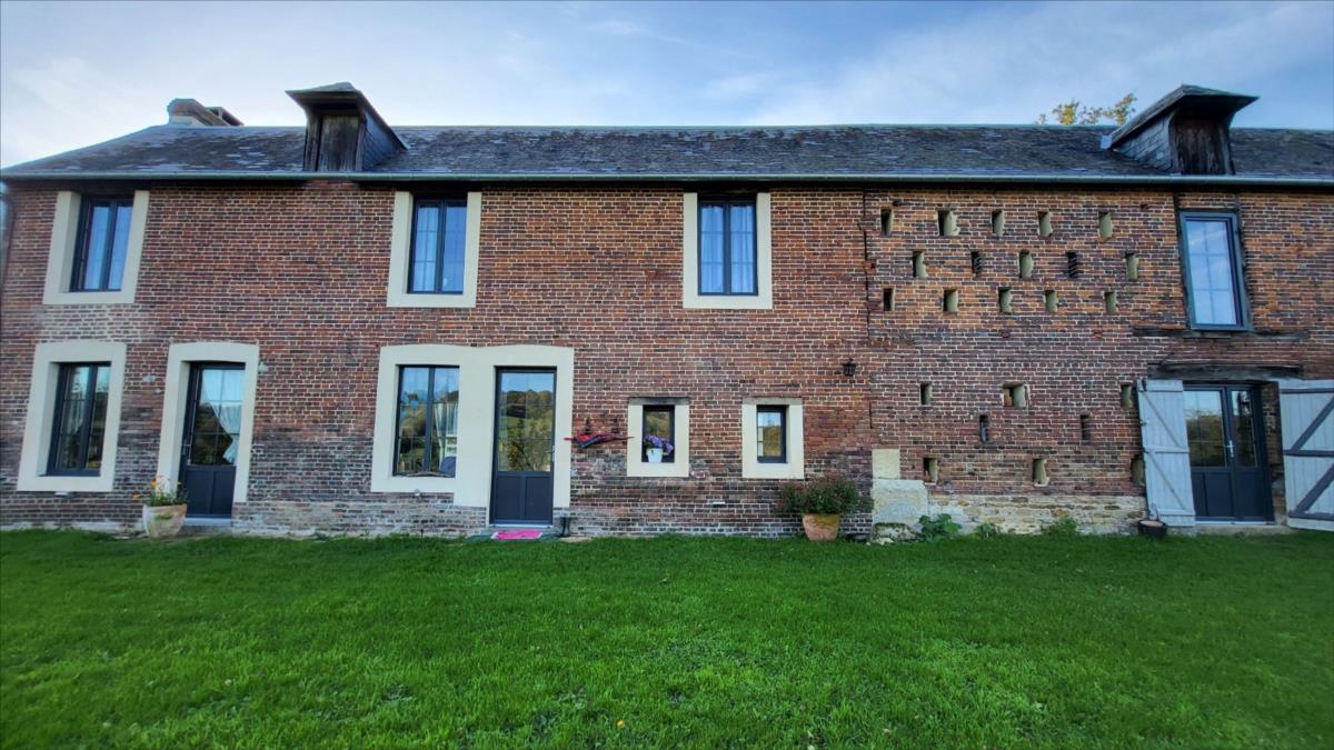 Belle maison en brique rénovée avec goût d'environ 106 m² comprenant : séjour avec cheminée, ouvert sur cuisine aménagée et équipée, buanderie, salle de douche avec wc suspendus et radiateur sèche-serviettes; à l'étage : palier desservant trois belles chambres parquetées, salle de douche avec wc suspendus; Chauffage électrique. Grenier au-dessus avec deux lucarnes. Triple vitrage au rez-de-chaussée ; double vitrage à l'étage. Dépendance attenante avec ancien haloir en brique et autre dépendance attenante en colombage avec cheminée.Logement à consommation énergétique excessive