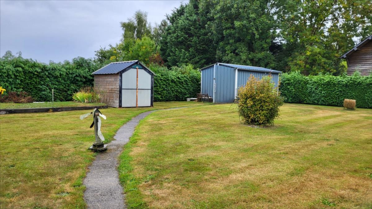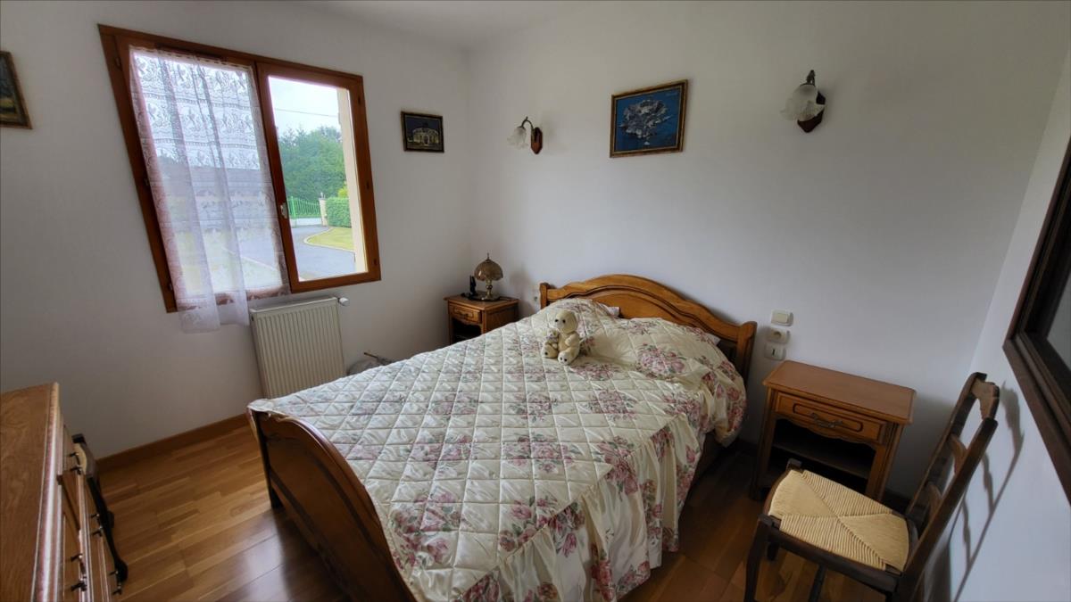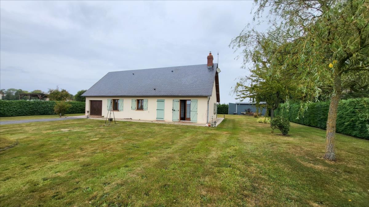 Pavillon d'environ 87 m² bien entretenu comprenant entrée, cuisine aménagée et équipée, séjour avec cheminée équipée d'un insert, couloir desservant trois chambres, wc, salle de douche. Garage attenant avec buanderie et chaudière murale au gaz avec cuve enterrée; grenier aménageable au-dessus. fenêtres en double vitrage bois. Assainissement individuel aux normes. Une dépendance en tôle avec électricité ; deux abris en bois