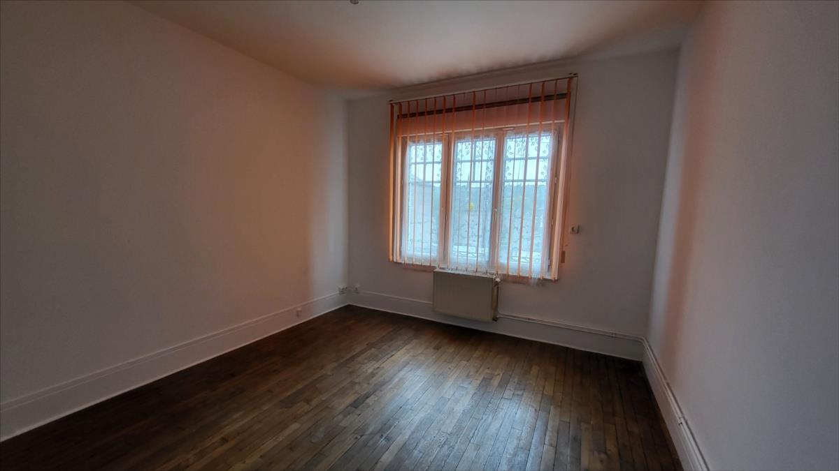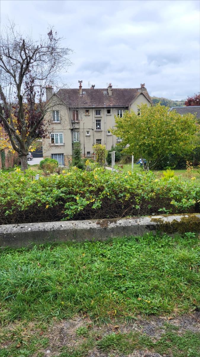 Appartement de 56 m² au 1er étage dans immeuble de 6 logements : séjour avec cheminée, cuisine aménagée avec chaudière gaz, salle de douche carrelée, wc, séparés, deux chambres parquetées. Cave et garage. Petit terrain à l'arrière.