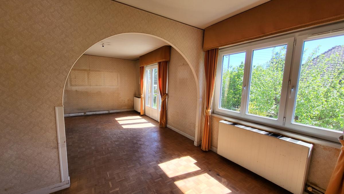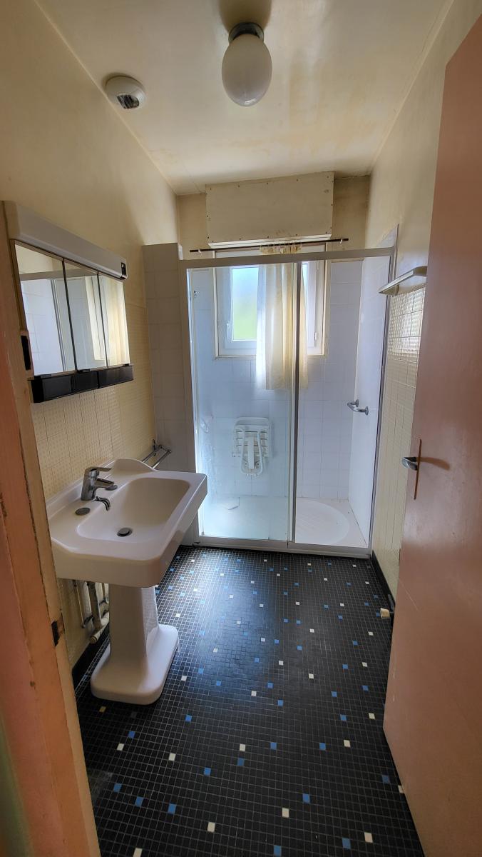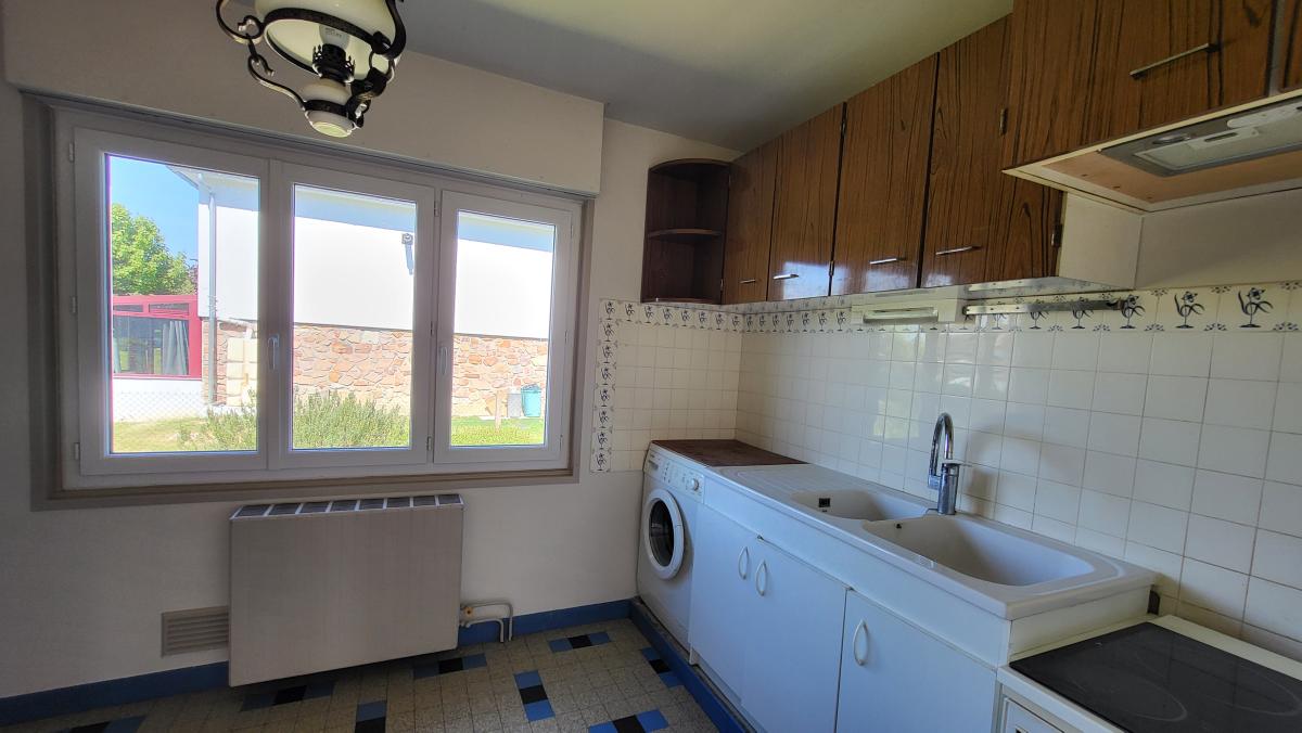Pavillon de 80 m² à moderniser comprenant entrée et couloir desservant : cuisine, séjour avec balcon, trois chambres, salle d'eau, wc séparés ; chauffage central au fioul par chaudière "De Dietrich"; fenêtres ¨PVC; volets roulants électriques; combles aménageables. Sous-sol complet avec partie garage, chaufferie, cave. Tout à l'égout.