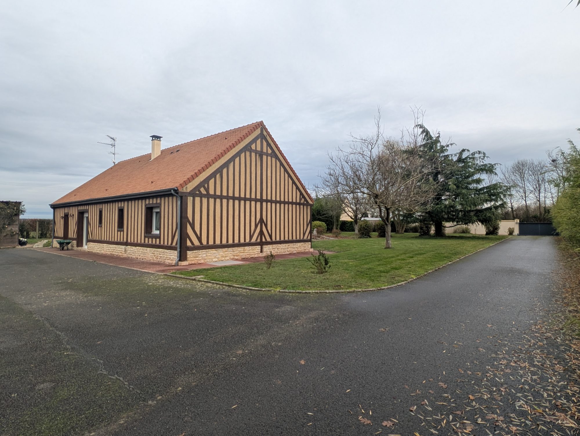 - Une maison de plain-pied, avec trois chambres, séjour, cuisine aménagée et équipée, salle d'eau et wc,