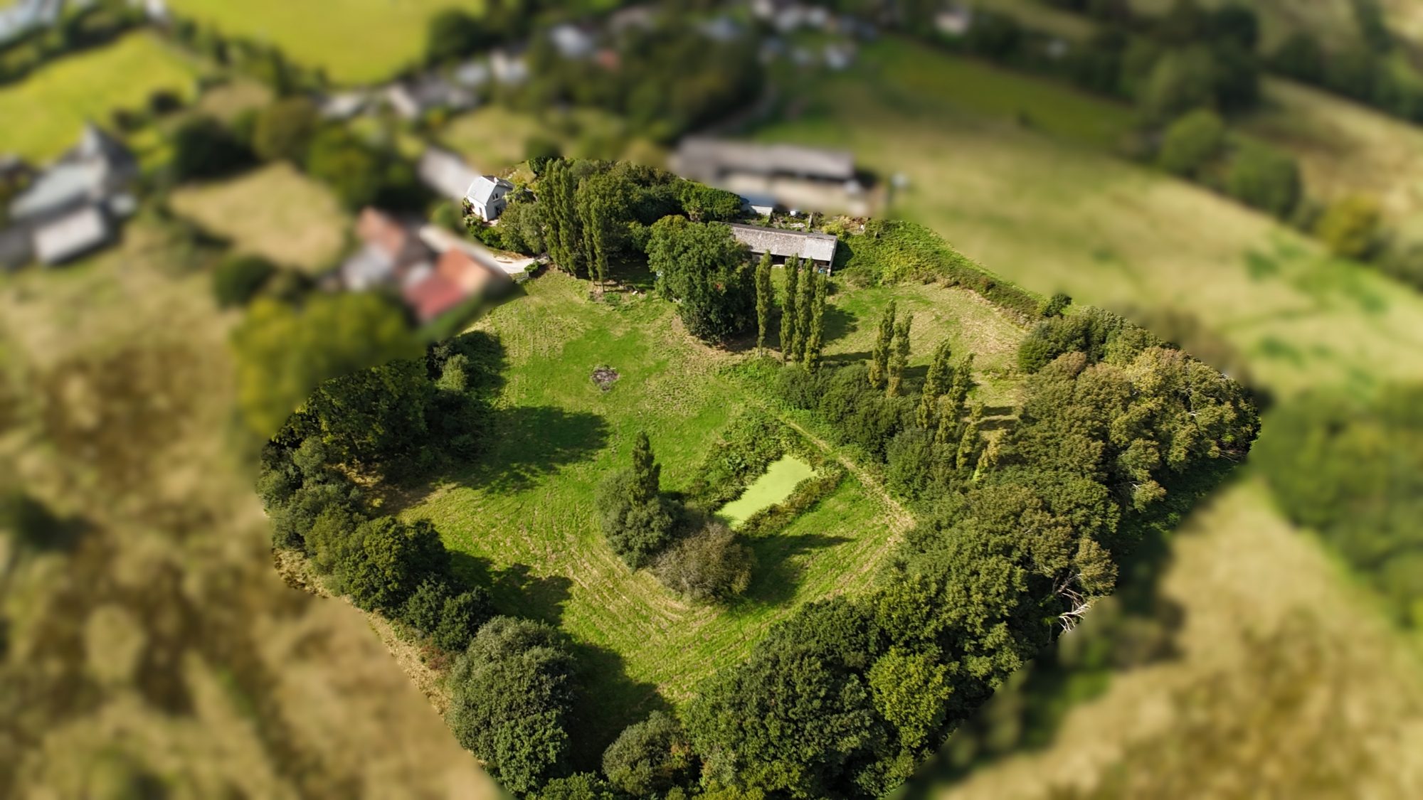 Prés autour avec plan d'eau et ancien lavoir.